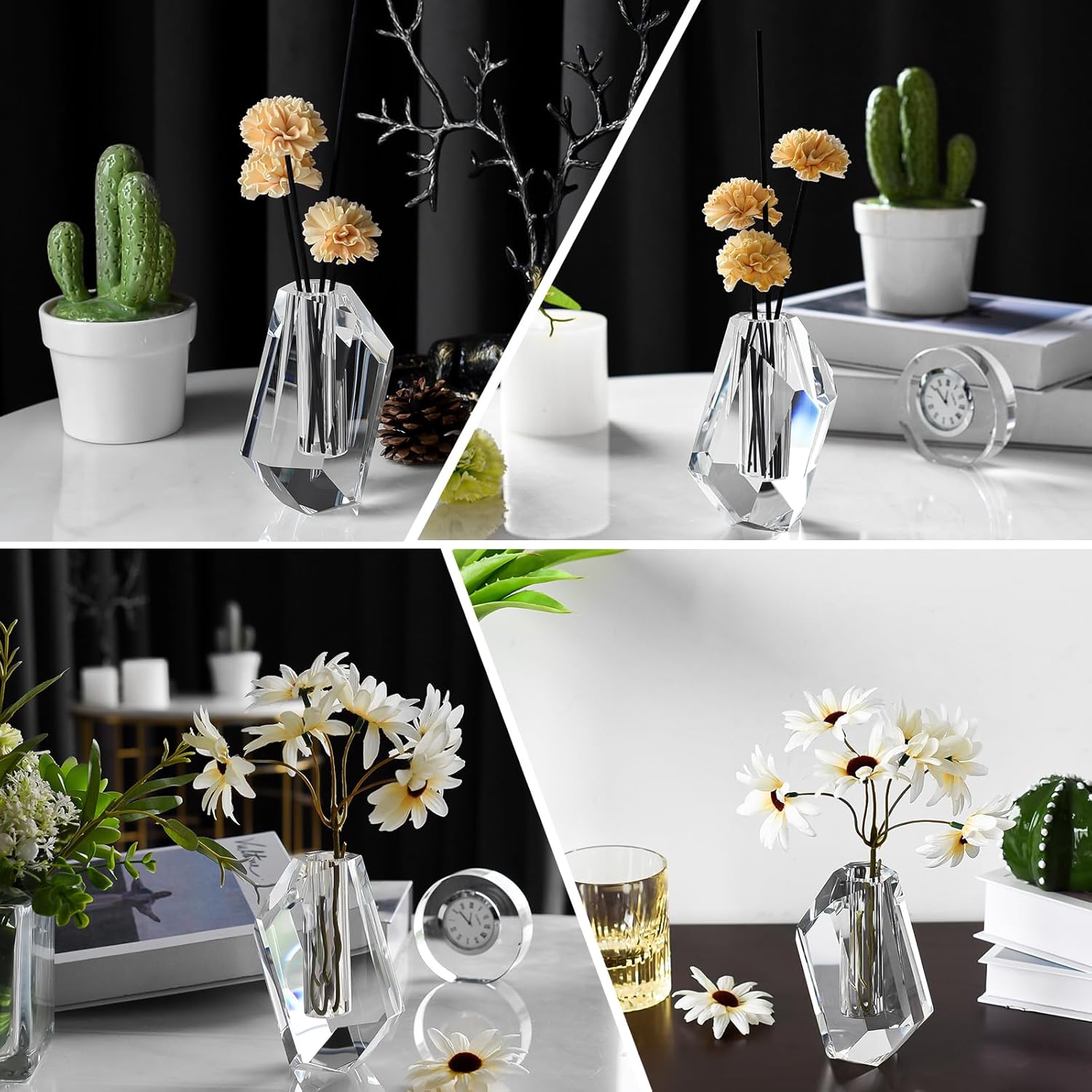 Elevate your home decor with this exquisite crystal vase that combines timeless elegance with contemporary style. Meticulously handcrafted with striking diamond facets, this premium clear glass vase creates a dazzling display as it catches and reflects light from every angle. Perfect as a centerpiece for weddings, anniversaries, or any special occasion, this sophisticated vase adds a touch of luxury to any setting. The classic design makes it versatile enough to complement both modern and traditional decor styles, while its sturdy construction ensures lasting beauty. Whether filled with fresh flowers, artificial arrangements, or displayed as a standalone decorative piece, this crystal vase makes a stunning statement in your living room, dining area, or entryway. Transform your space with this masterpiece of craftsmanship that's sure to become a treasured part of your home decor collection.