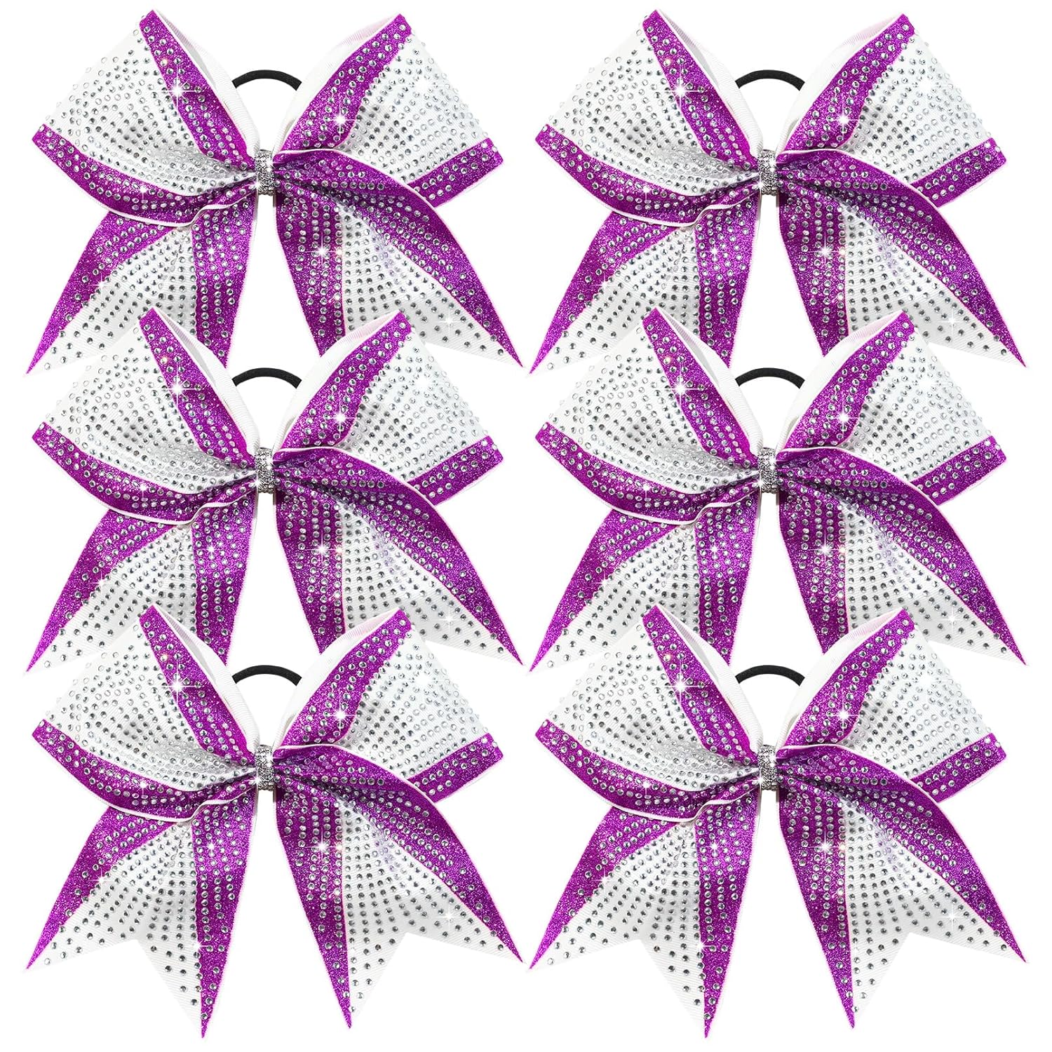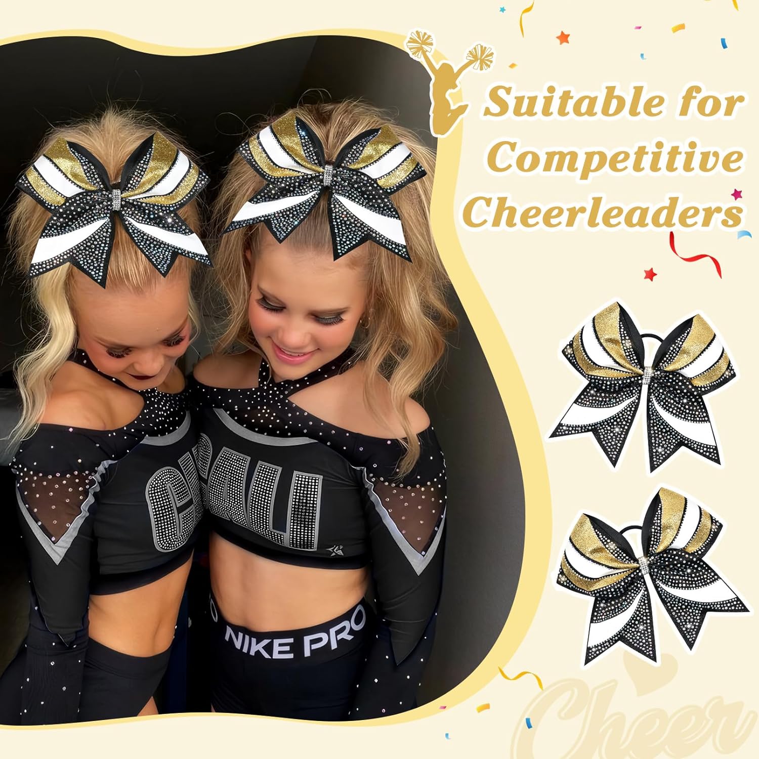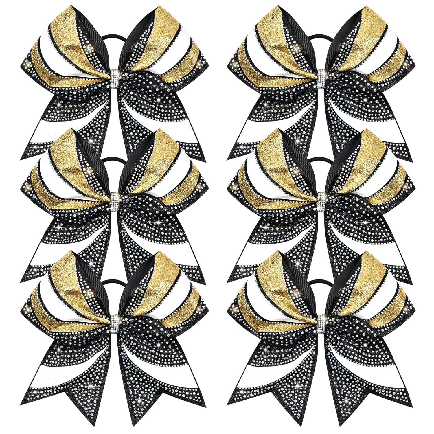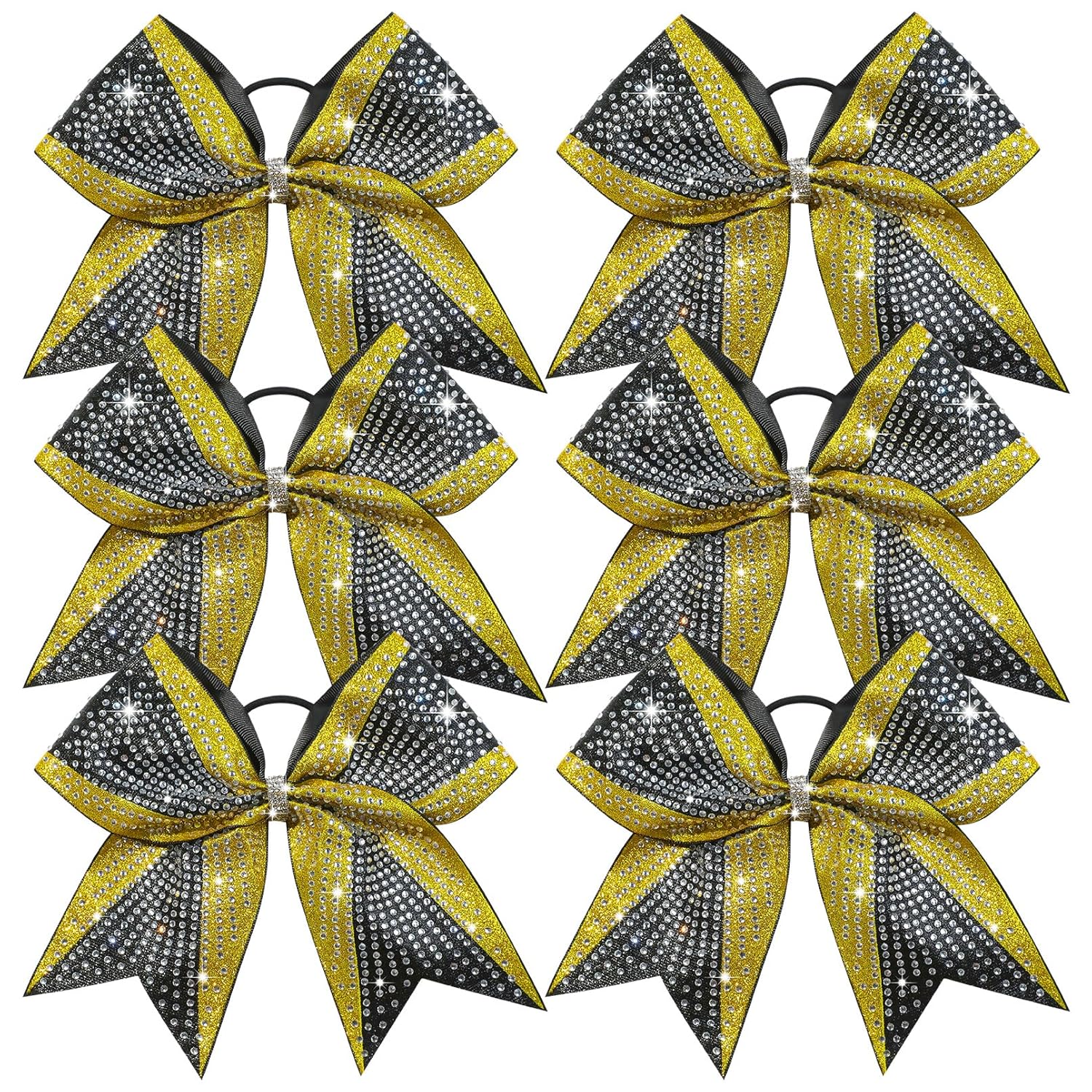 Glitter Cheer Bows - Each cheer bow shines with a triple-color glitter design and is topped with sparkling rhinestones that catch the light from all angles Measuring approximately 7.5" x 7", each bow is crafted from wide 3-inch grosgrain ribbon with glitter fabric. The oversized design ensures high visibility from a distance—ideal for performances and pep rallies
