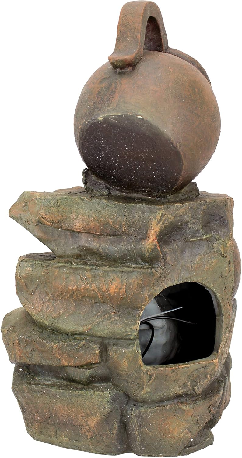The Italian coast is filled with beautiful views & romantic retreats where you might spot a scene like this. Our charming fountain cascades water from two urns into an LED illuminated rocky basin that can be enjoyed even in the evening as the lyrical sound of falling water creates a peaceful in-home oasis. The Laverne cascading urns fountain is perfectly sized to be placed anywhere, from a deck to a patio table. Cast in quality designer resin & hand-finished to replicate natural stone & aged terracotta, our Laverne garden fountain features a UL-listed, indoor/outdoor pump. Another imaginative sculptural fountain from the Design Toscano "small Wonders" Collection, It will make a delightful gift for yourself or a friend! Some assembly required. 12&Frac12; "Wx10"Dx21½ "H. 13 lbs.