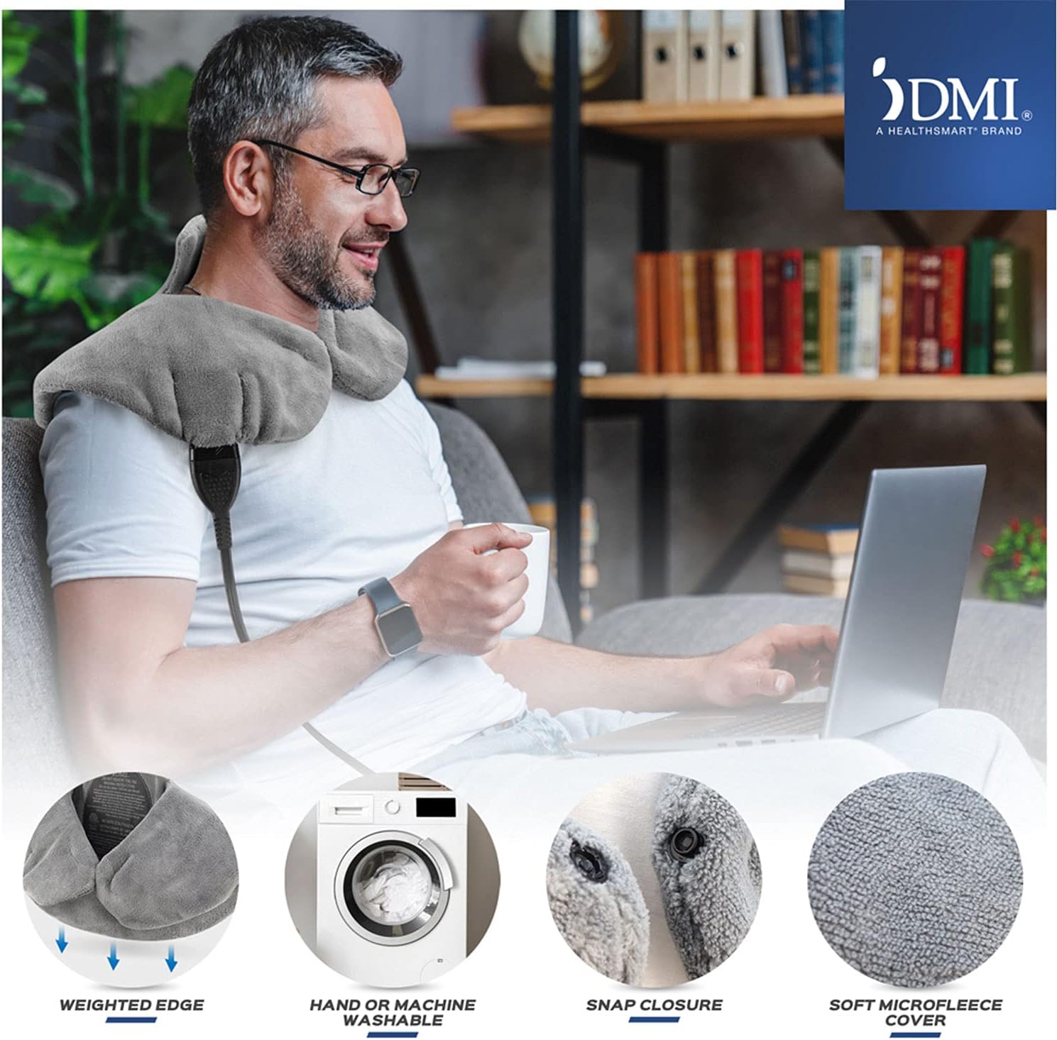 This best-selling shoulder, back and neck heating pad helps to relieve pain and tension associated with spasms, cramps, headaches, tired or stiff muscles. The contoured heat therapy soothes while delivering heat to problem areas. The material is made of extra soft microfleece that can be either hand or machine washed while the large size generously covers the neck, shoulders and upper back. The weighted edges with Snap closure keep the pad in place. Three different heat options offer direct and targeted relief when most needed and 2 hour auto shutoff helps ensure safety during extended use. A 9 ft Power Cord offers ease and accessibility while keeping the heating pad in place.