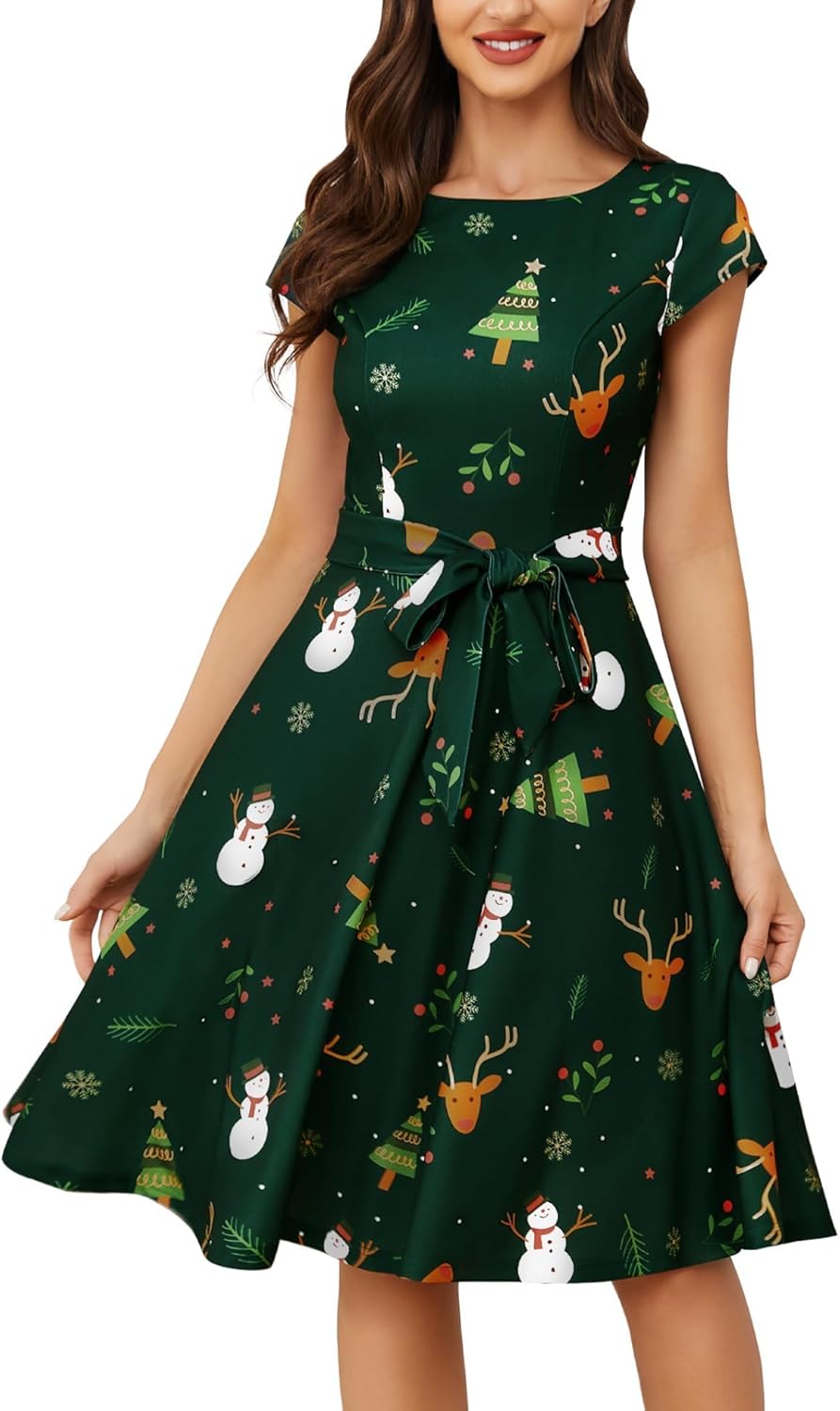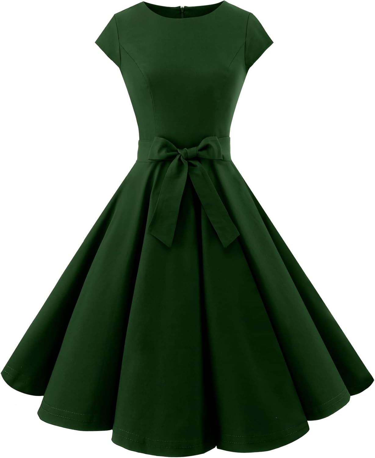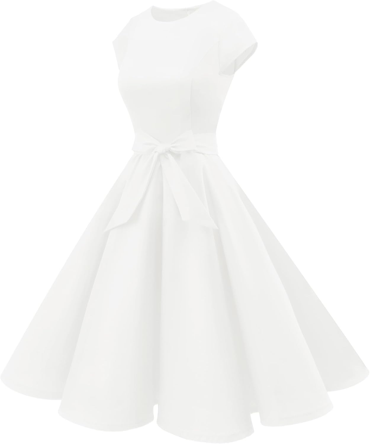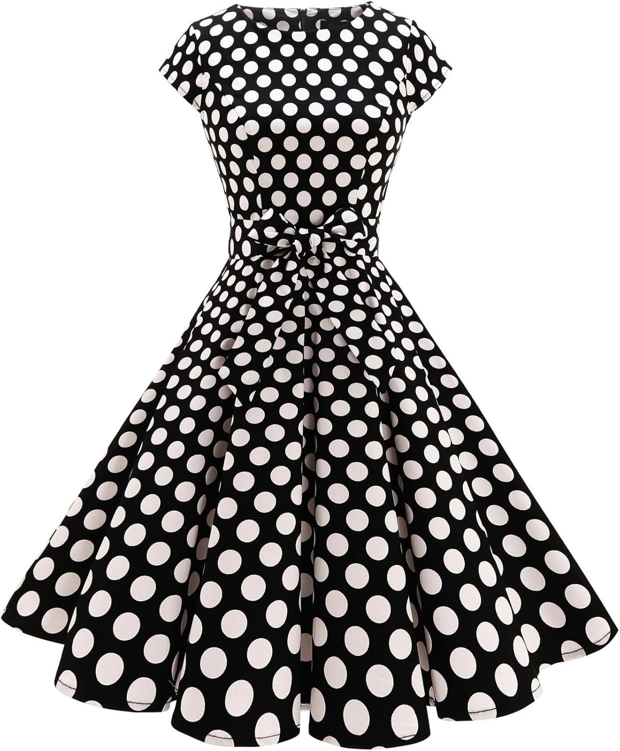 Women Vintage 1950s Retro Rockabilly Prom Dresses Cap-Sleeve.This dress embodies the timeless charm of the 1950s with its vintage-inspired design,Crafted with cap sleeves, it boasts a full circle flared skirt that elegantly dances as you move.A detachable belt comes along to cinch at the waistline, highlighting your curves and creating a beautifully defined silhouette without sacrificing comfort.The fabric used is both stretchy and flowy.