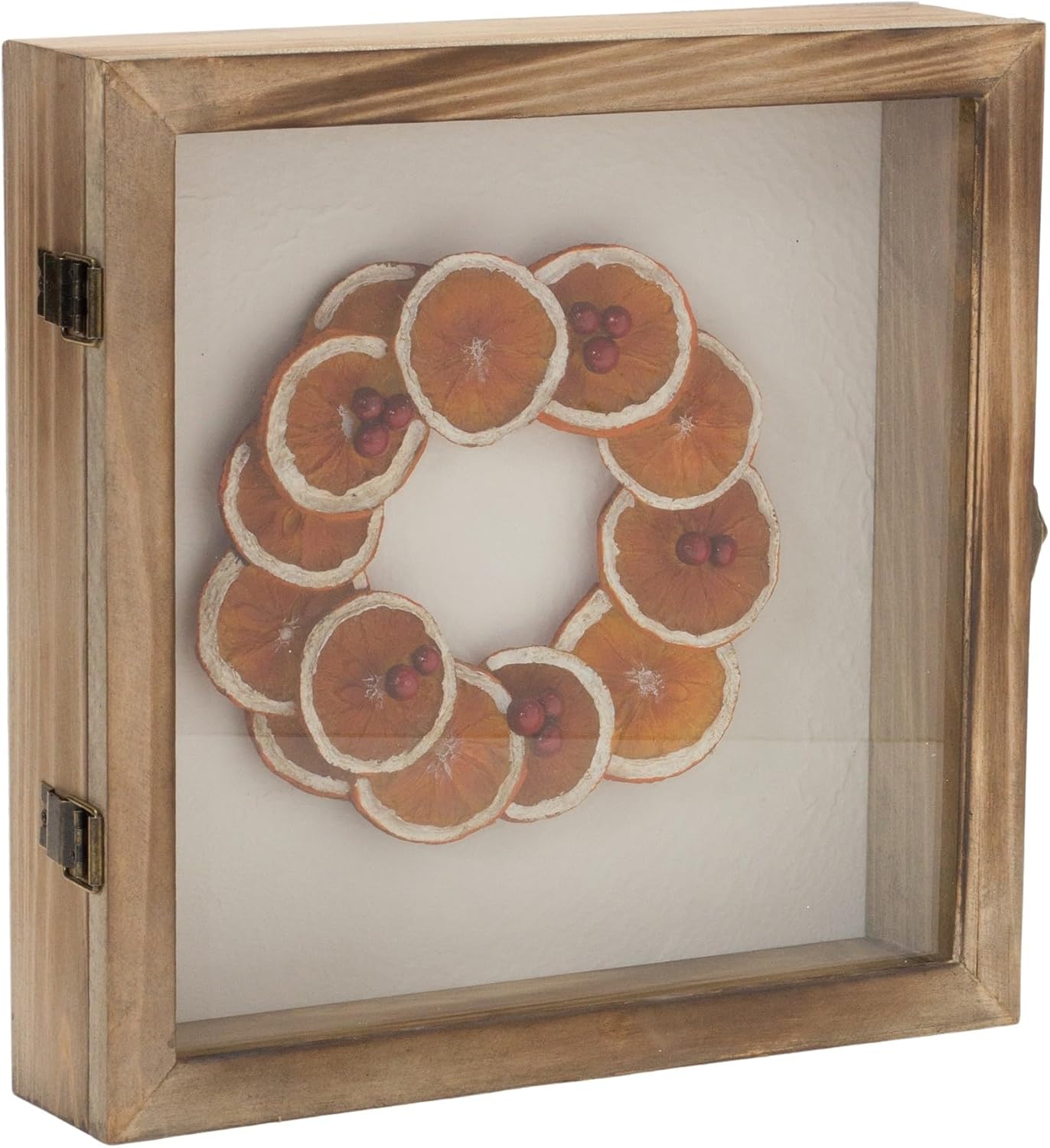 Instantly upgrade your walls with the Fruit Wreath Shadow Box! This stunning wall art features a natural wood frame and shadow box design, with dried oranges and star fruit with berries for an intricate touch. Crafted from quality polyresin for durability, this holiday wall decor will add a whimsical charm to any room in your home. Don't wait - adorn your walls with the beautiful Fruit Tree Shadow Box today!