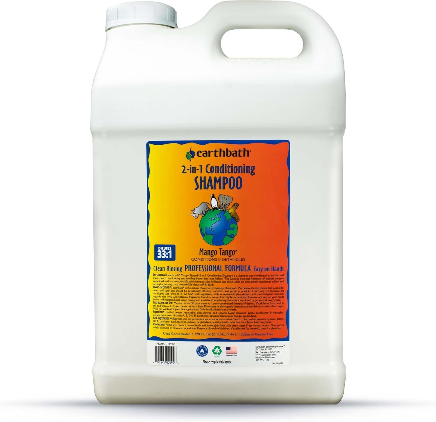 Earthbath Mango Tango 2-in-1 Conditioning Shampoo is a natural shampoo and conditioner in one that is highly effective, heavenly scented, and biodegradable. Pets’ coats and skin will look and smell better than ever before, naturally. The lucious essence of tropical mangoes combined with an exceptionally mild shampoo adds brilliance and shine while the extra gentle conditioner softens and detangles, leaving coats wonderfully clean, soft & plush. Will not wash off topical flea applications. Safe for all animals over 6 weeks. Made in the USA.