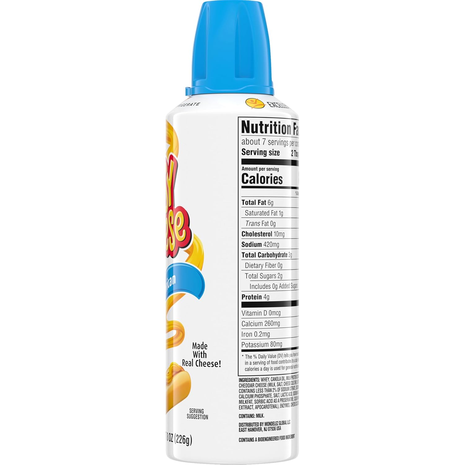 EASY CHEESE American Cheese Snack has the delicious taste of American cheese in a fun, spreadable form. This spray cheese is pasteurized and requires no refrigeration, making it a convenient, go anywhere snack. Made from milk, whey, and real cheese culture, EASY CHEESE spread is an excellent source of calcium. Use EASY CHEESE cheese snack to create designs on crackers or pretzels to make snacking more fun, top tortilla chips with this spray cheese for instant nachos or add some cheesiness to your meals. This bulk box of EASY CHEESE comes with 12 individual 8 ounce cheese cans that store easily in pantries.