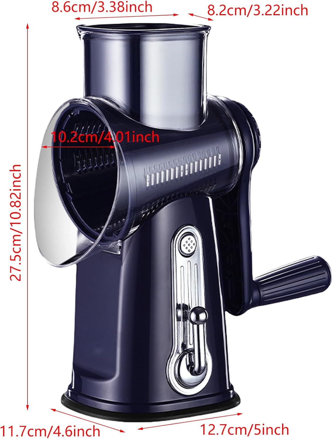 Easy to Round Mandolin Slicer for Fruit Vegetable and Nut Hand Cranked Cheese Grater and Shredders Cooking Tool Features: easily slicing with our new rotary vegetable slicer, features a hand cranked designs, ensuring quick and efficient meal preparation Crafted from abs, this slicer is rusts and designsfor, making it user friendly Ideal for home cooks, cooking enthusiasts, this vegetable cutter simplifies your kitchen tasks and elevates your cooking Perfect for daily meal preparation, family gatherings, and crafting meals, the slicer handle hard fruits and vegetables like carrots, cucumbers, and potatoes easily With its easy to removable parts, this kitchen tool not only enhances your cooking creativity but also ensures a safe cooking process Specifications: Component: Stainless Steels Size: Approx.27.5x11.7x12.7cm / 10.82x4.6x5inch Weight: 925g Package Includes: 1pc Rotary Vegetable Slicer Note: 1.Please allow 1-2cm errors due to manual measurement, make sure that you donot mind before you order 2.Due to the differences between different monitors, the picture may not reflect the actual color about the item