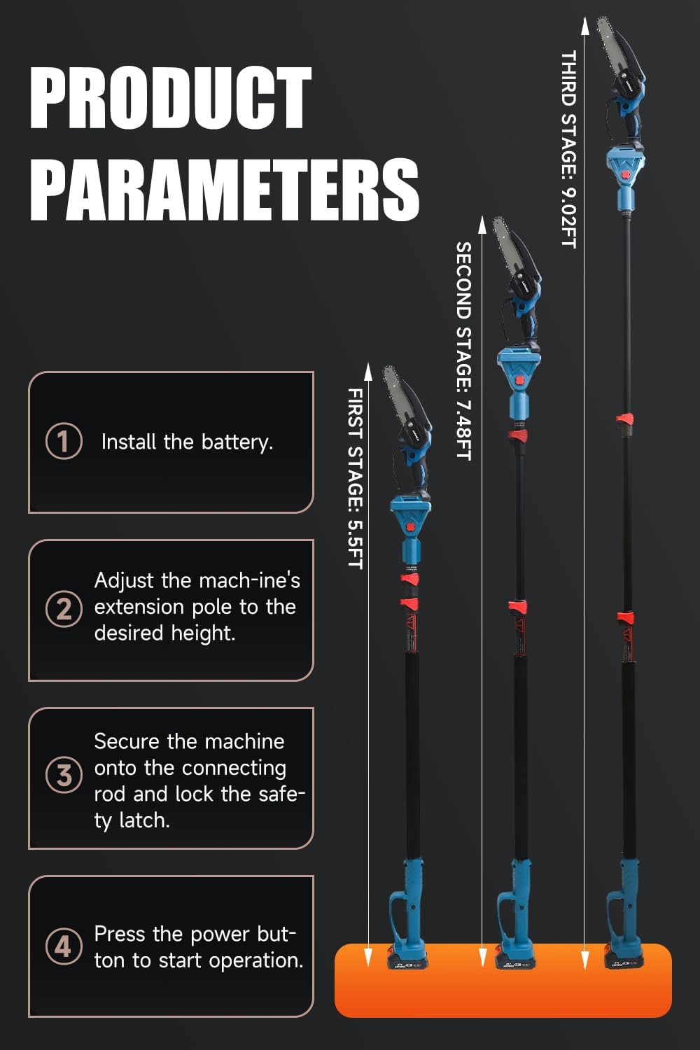 | Included Components | 1*charger,1*instruction manual, 1*extension handle, 1*electric scissors, 1*safety glasses,1*spare chain, 2*high-capacity batteries, 1*electric saw, 2*screwdrivers,1*working gloves |