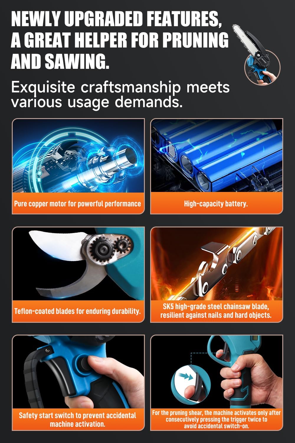 | Blade Material | High-carbon SK5 steel, sharp, high-hardness chain |