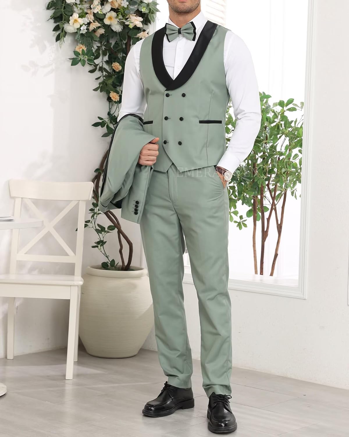Item: EMERAIDVLN Mens 3 Piece Tuxedo Suit Set, Peak Lapel One Button Jacket Vest and Pants with Bow Tie, Wedding Prom Party Tux Material: 80% Polyester, 20% Viscose Closure: one button blazer men Collar Style: peak lapel tuxedo blazer Season: spring, summer, autumn, winter Washing Method: Dry Clean Only Package Includes: tuxedo blazer jacket *1, vest *1, suit pants *1 and boe tie *1. Notice: 1. ABOUT COLOR: Computer screen has chromatic aberration, especially between CRT screen and LCD screen, color difference can not be avoided, so please understand that point. 2. ABOUT SIZE: To avoid the size issue, please pay much attention to our size chart. If you are unsure of the size, you can measure the following dimensions: 1) Chest __ inch/cm 2) Abdominal __ inch/cm 3) Shoulder Width __ inch/cm 4) Sleeve Length __ inch/cm 5) Waist __ inch/cm 6) Hip __ inch/cm 7) Height __ inch/cm 8) Weight __ lbs/kg 3. Please ensure that the chest circumference of the jacket is 3-4 inches larger than your actual body chest circumference 4. Please ensure all details (size/color and so on) in 24 hours after you made the order, limited by handing time of the website, we can't make the change after the tailors start working.
