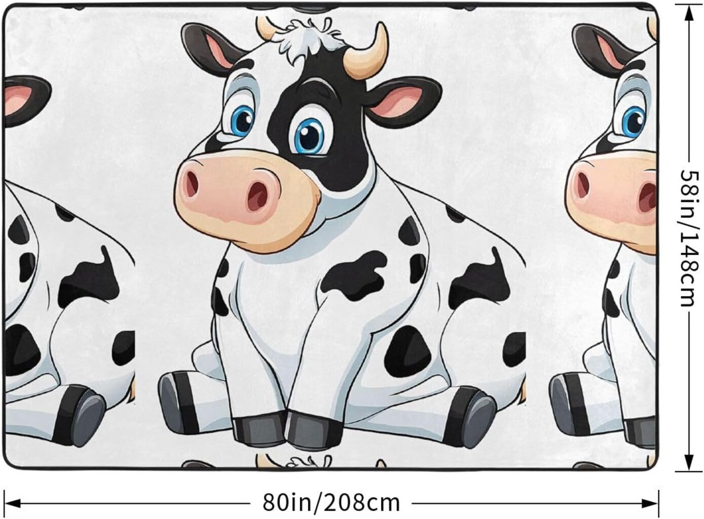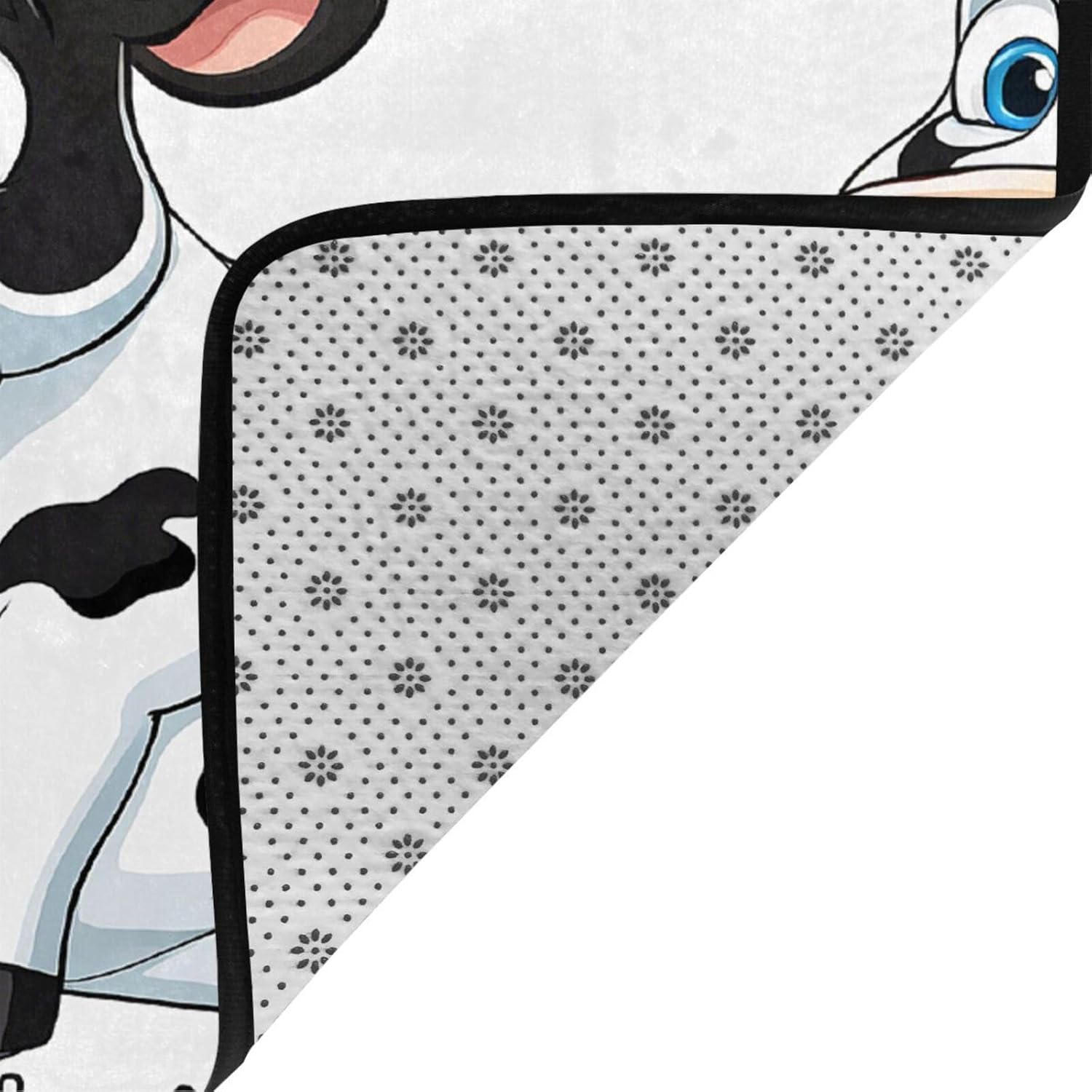Flannel Non-Slip (Cartoon Milk Cow) Rug Pad 80×50in Soft Washable Protective for Hardwood Floors Bedroom Bathroom Living Room
