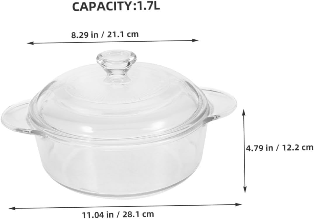 Package Include 1 x food bowl (with lid) Features -Product Info:Heat-resistant glass bowl -Size:28.10X21.10X12.20cm/11.04X8.29X4.79in -Color:Transparent -Material:Glass -Capacity: 1.7L glass bowl -The food bowl is easy to use and simple to clean, bring much convenience to you fruit bowl with cover. -Bowls made of food-grade glass, ensuring you can eat all types of food with confidence water bowl glass container. -This salad bowl is made of selected glass material with detail, which is . -The beautiful salad bowls can be given to others as wonderful housewarming item. They will fall with the bowl salad bowl. -This bowl is suitable for fruit, dessert, fruits, cuisine food and others more. The bowl is more appealing than disposable bowls, nesting beautifully for storage clear glass bowls.Goods Informationglass salad bowl with lid Delicate appearance design, its popularity.salad bowls with lids Made of glass material, enough for your long-term use.fruit bowl with cover Searching of a Salad Bowl? Our creative and practical glass bowl will be the choice for you.glass salad bowl The bowl is classic and never goes out of style, can be integrated into any style of home decoration