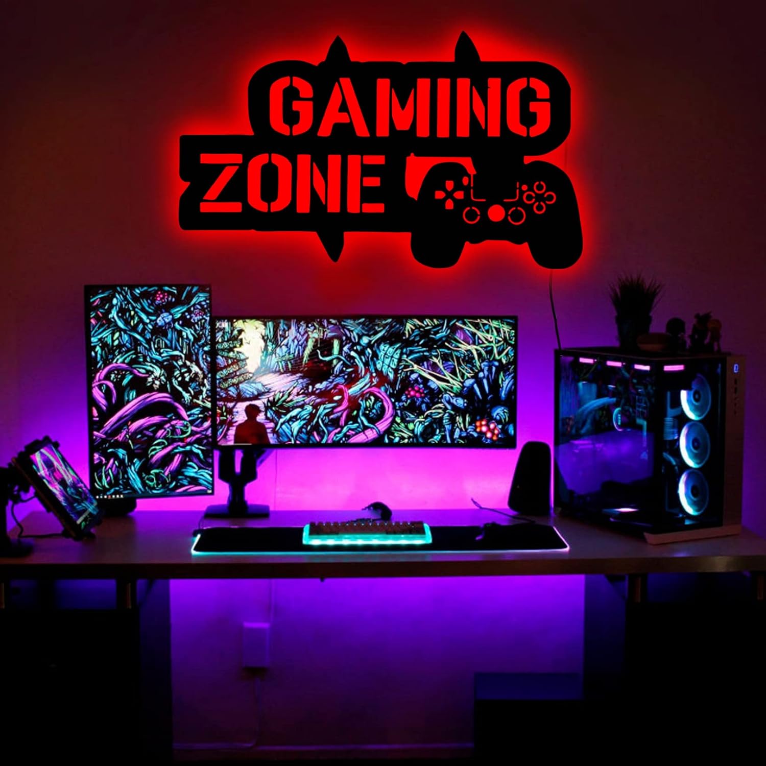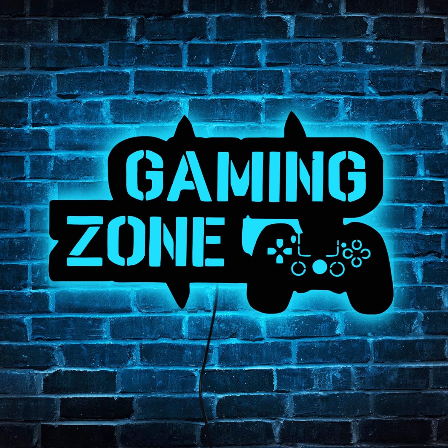 This wonderfully personalized wall art-inspired LED-lighted control sign is the perfect "wow factor" for your game room, dorm room, or any entertainment area! The artwork panel is spaced from the wall for a very cool floating look! It includes the following great features: - No light / Single color light / RGB 16 colors 4 different animations with remote - Color-changing LED lights (RGB option) are controlled by the built-in wireless remote control, allowing you to easily select colors in literally hundreds of combinations. - Multiple lighting modes to fade, skip and flash colors! - Light control to keep the lighting low like a night light or too bright for an extra light source in the room. -Easy to hang and fully assembled - set up on your wall in seconds and ready to party!