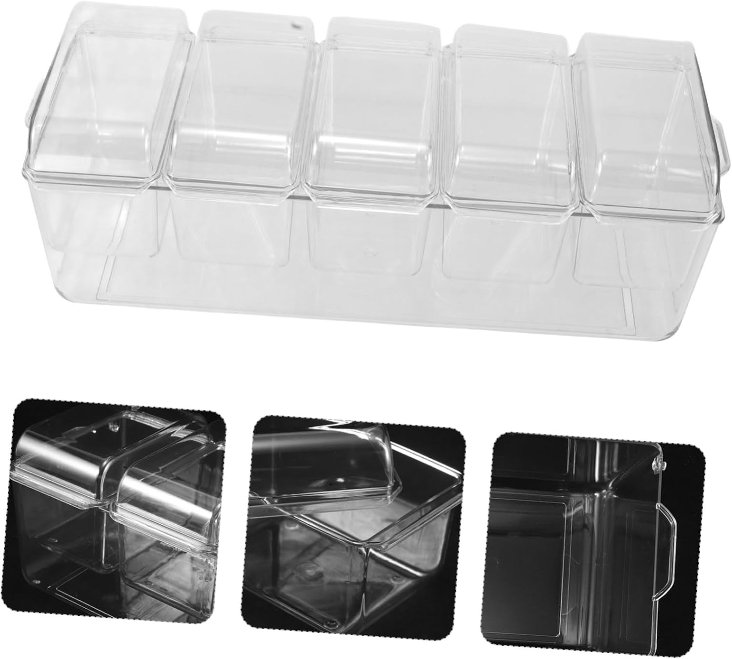 Package Include 1 x Salad box fork 3 x tongs 3 x refrigerator storage box Characteristics -Convenient detachment: the detachable design of the condiment tray makes it easy to disassemble and clean condiment organizer -Transparent design: the clear material of the bar garnish holder allows for easy viewing of stored food, simplifying condiment server -Ice chilled feature: the ice cooled condiment holder keeps your food by maintaining a chilled environment, ideal for salads and fruits condiment containers -Versatile application: for home, picnics, and parties, these chilled condiment servers are versatile and suitable for various occasions snack tray - Size: 14.00X3.00X1.00cm/5.50X1.18X0.39in garnish tray - Size: 40.50X14.50X13.50cm/15.92X5.70X5.31in picnic supplies -Spacious design: with a large capacity, these produce containers for the fridge can store multiple of food, catering to family needs bartender accessories -Material:Plastic divided serving tray - Color: Transparent produce containers for fridge - Size: 15.00X4.70X1.80cm/5.89X1.85X0.71in condiment serving trayGoods Informationsnack containers Prepare your salads in advance and store them in the divided snack tray with a lid.ice chilled party platter The ice-cooled serving tray keeps your ingredients , making it easy to enjoy a healthy meal at work or on the go.produce containers for fridge For meal prepping, the salad meal prep containers are a game-changer.picnic supplies Simply add ice to the bottom tray before heading out