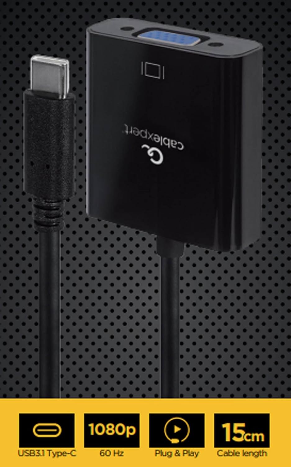 USB TYPE C TO VGA ADAPTER CABLE 15 CM BLACK