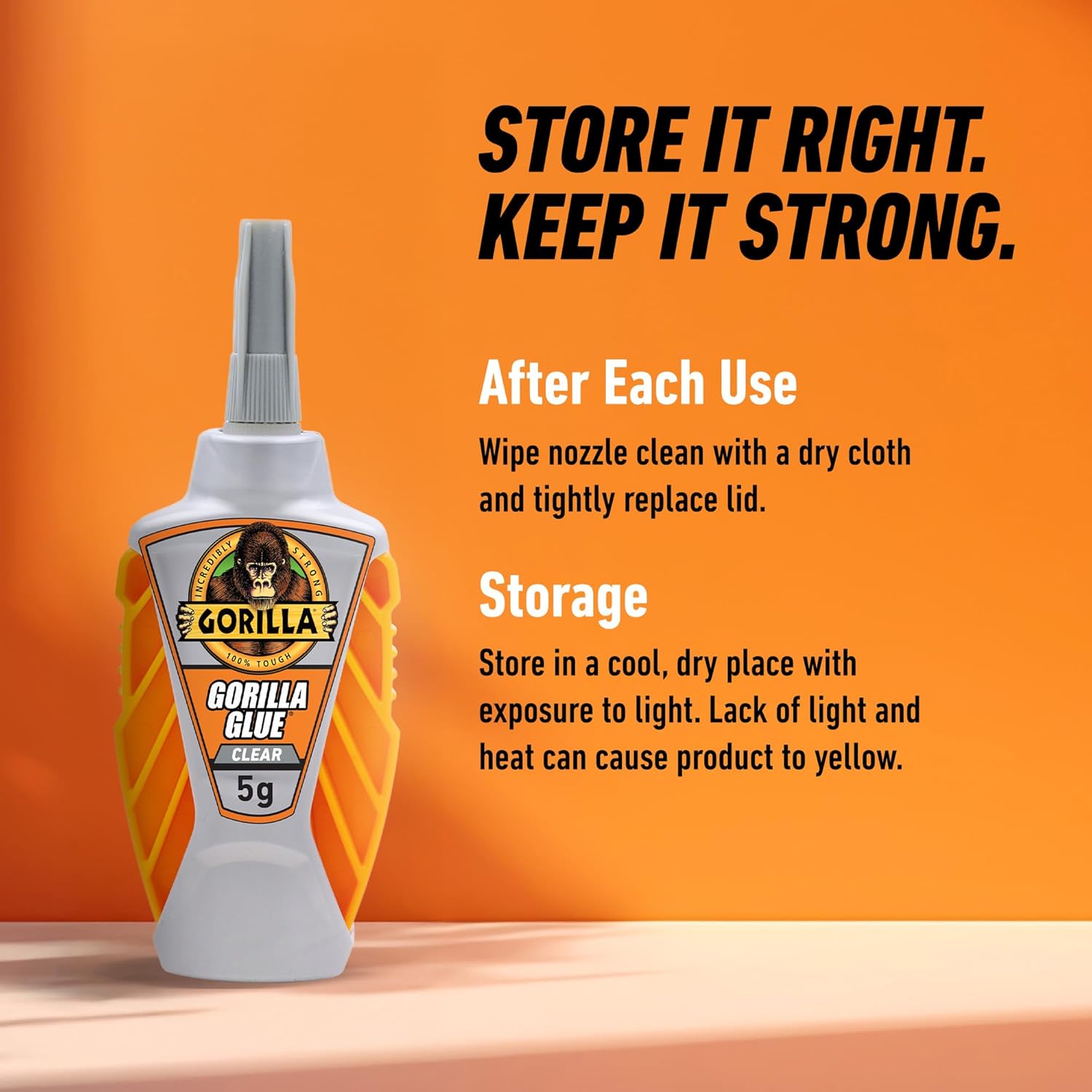 Our same strong, crystal clear, non-foaming formula now in a precise dispensing tool designed to fit comfortably in-hand. Clear Gorilla Glue® Micro Precise™ provides and easy-to-use, precise application experience that allows you to apply only the amount of glue you want, exactly where you need it. Clear Gorilla Glue® is incredibly strong and ideal for indoor and outdoor applications.