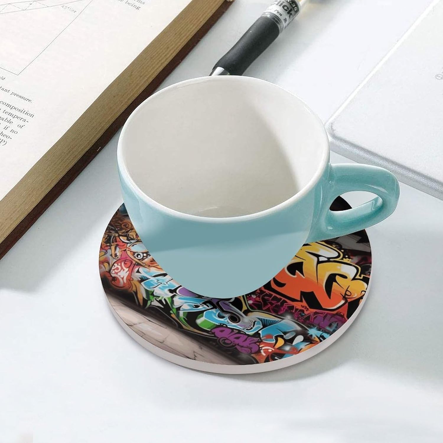 Introducing our ceramic coaster, a practical and elegant addition to your home and office that combines functionality with simple charm. Crafted with premium ceramic, this coaster features a smooth and sleek surface that not only looks exquisite but also effectively insulates heat, keeping your desktop away from the damage of hot drinks. The added cork bottom is carefully designed to prevent direct contact between the ceramic and the desktop, avoiding scratches and wear on your valuable furniture, while also enhancing friction to keep the coaster and cup stable without slipping.With its universal size, the ceramic coaster is suitable for various cup types in daily life, whether you are enjoying a cup of hot coffee in the morning, a cup of warm tea in the afternoon, or a glass of cool white wine in the evening, it can perfectly fit your cup and provide reliable protection. Unlike ordinary coasters, our ceramic coaster is easy to maintain—any accidental spills can be wiped clean in seconds with a damp cloth, no tedious cleaning steps required, saving you time and energy.This ceramic coaster is not only a practical daily necessity but also a subtle decorative piece. It is suitable for decorating your kitchen, living room, bedroom, office, dining room and bar, adding a touch of simplicity and elegance to any space. Whether for personal use or as a small gift for friends and family, the ceramic coaster is a perfect choice that combines practicality and aesthetics, bringing convenience and beauty to your daily life.