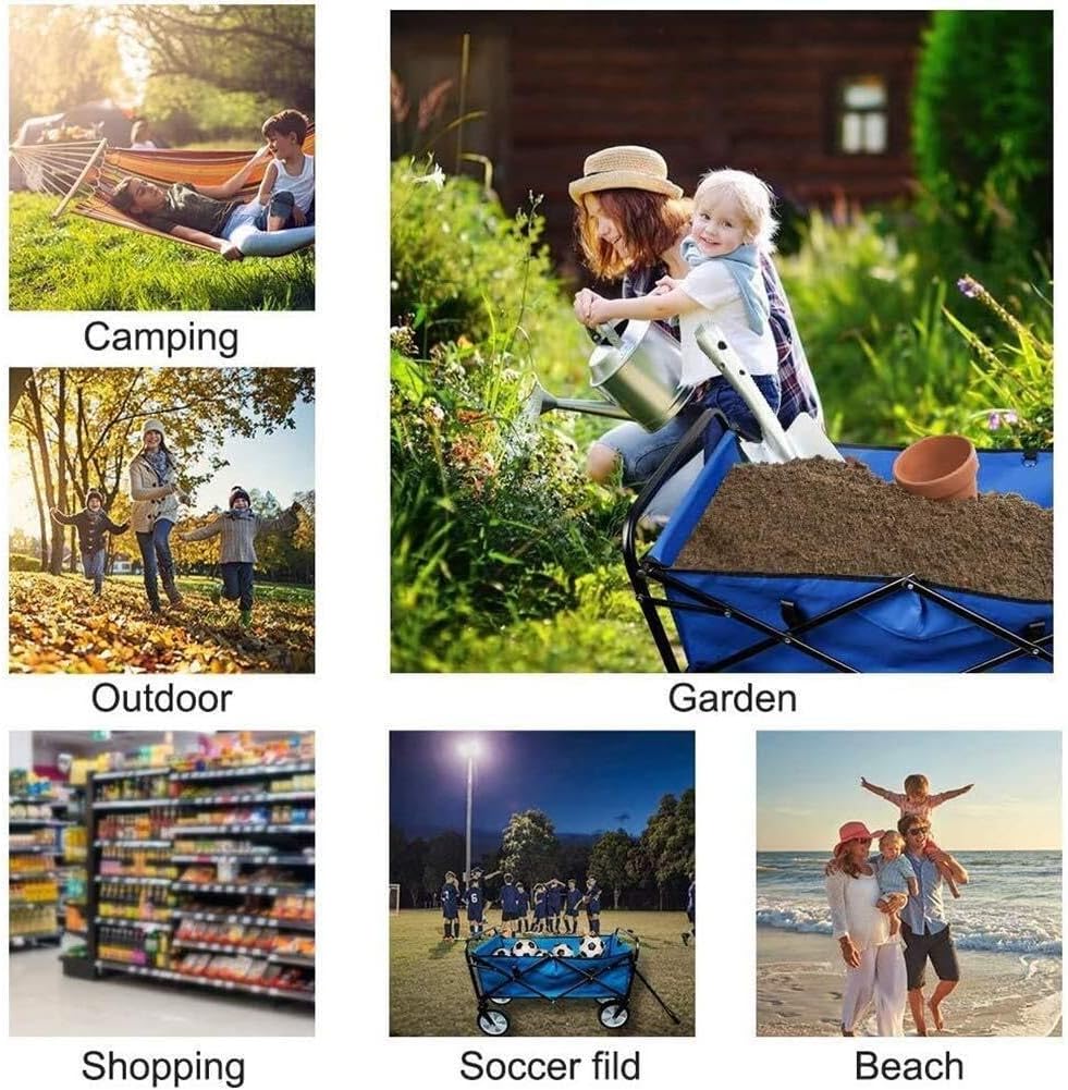 This foldable outdoor utility wagon is designed to make transporting your gear effortless and comfortable. Featuring a cushioned handle for long-lasting comfort, this heavy-duty wagon can carry up to 150 pounds of equipment, with a large 110L capacity measuring 40.5” long, 21” wide, and 46” high. The durable 600D fabric and powder-coated steel frame ensure strength and longevity for any outdoor activity. Additional features include Velcro straps and D-rings to secure bulky items such as umbrellas or camping gear safely. Folding quickly into a compact size, the wagon is easy to store and transport, fitting neatly into your car trunk or closet. Ideal for gardening, camping, beach outings, sporting events, or even as storage at home, this versatile wagon also includes a convenient folding chair for rest wherever you go. Experience convenience and durability in one package.Frame : Durable steel,easy to fold,powder coated blackOverall dimensions: 40.5"L *21.26"D* 46.46"HFolded dimensions: 30"L *21.2"D* 9"HWheel Size: 8x4'' (DIA.x Thick)Handle Size: 24.8''Capacity: 110LMaximum Weight:150PoundsWeight: 22.05LBSPackage:1 x Foldable Wagon Cart1x Handsel Folding Chair1 x Instructions