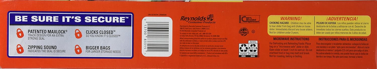 Hefty One Zip 2.5 Gallon Jumbo Storage/Freezer Bags, great for all your Storage needs, stays closed, first time, every time, tough, clear plastic provides protection and makes it easy to see what's in the bag. It’s easy to use. Colorful sliders for easy identification.