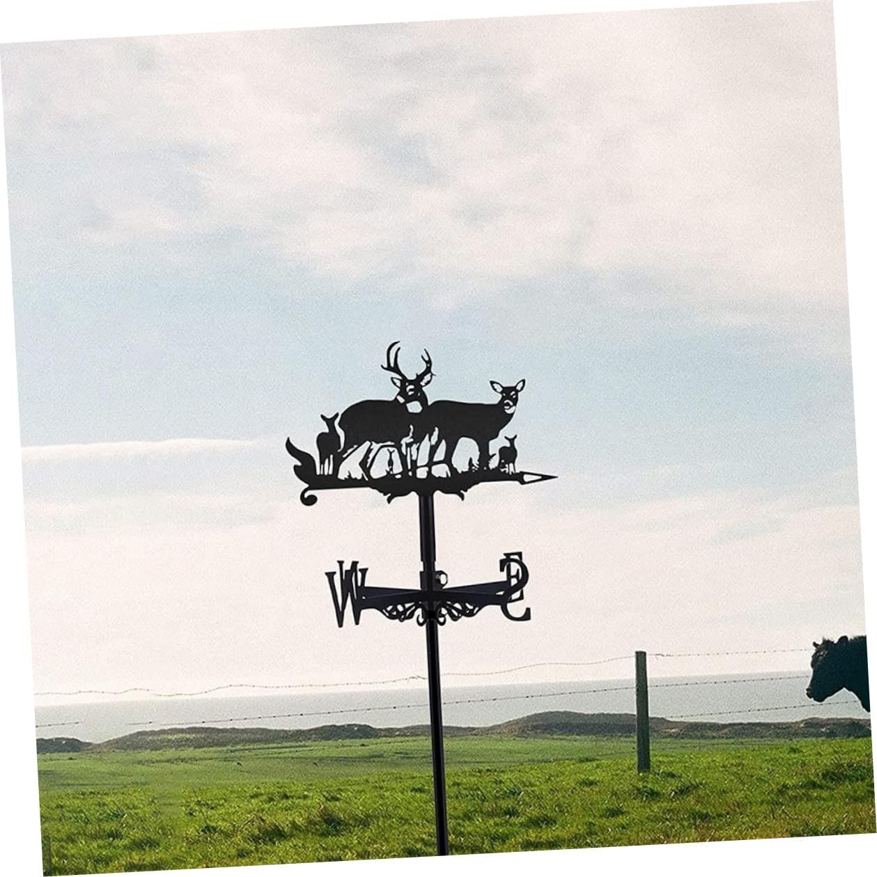 Package Include 1 x set of Weathervane Characteristics -Color:Black -Product Info:Weather vane decoration -Size:50.00X35.00X0.20cm/19.65X13.76X0.08in -Material:Iron - A wonderful housewarming gift for your family and friends, and they will be happy to receive this metal wind vane. - The elk design iron weather vane can help designers design a garden suitable for the weather weather vanes. - Easy to install on the roof, which is convenient and practical to use, bring you convenience iron wind direction indicator. - The weather vane adopts simple style and allows you to intuitively understand the change of wind direction small wind direction indicator. - The iron material is safe and durable, which is wear resistance and practical for the long time use.Goods InformationIron Weather Vane Made from safe iron material, durable enough for your long-term use.weathervanes for garden Searching of a weather vane? Our iron weather vane will be the for you.weather vanes for yard Practical and portable design, ensures its popularity.direction indicator craftsmanship and good material make it look simple yet function well