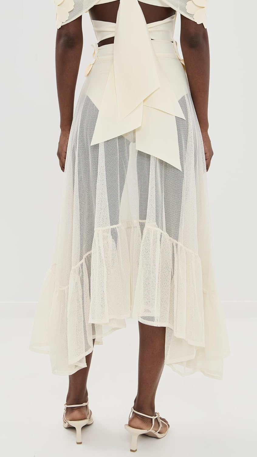 The Jardin de Lu Skirt is a semi-transparent mesh skirt adorned with flowers at the top. Complete your stylish look by pairing it with the Jardin de Lu Top.