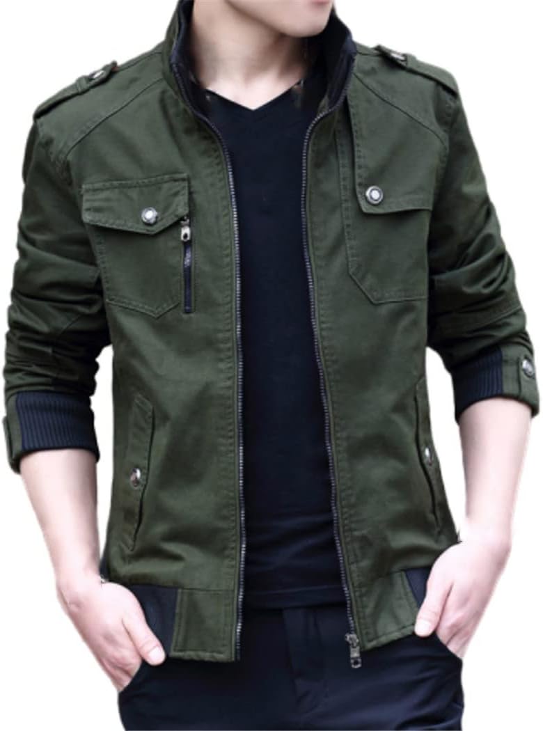 Material:PolyesterLining Material:PolyesterStyle:MilitaryApplicable Scene:DailyClosure Type:ZipperItem Type:Outerwear & CoatsThickness:STANDARDOuterwear Type:JacketsPattern Type:SolidGender:MENDecoration:PocketsCollar:STANDCuff Style:Rib SleeveColor:Khaki,Green,Black,BlueApplicable Season:Autumn Winter