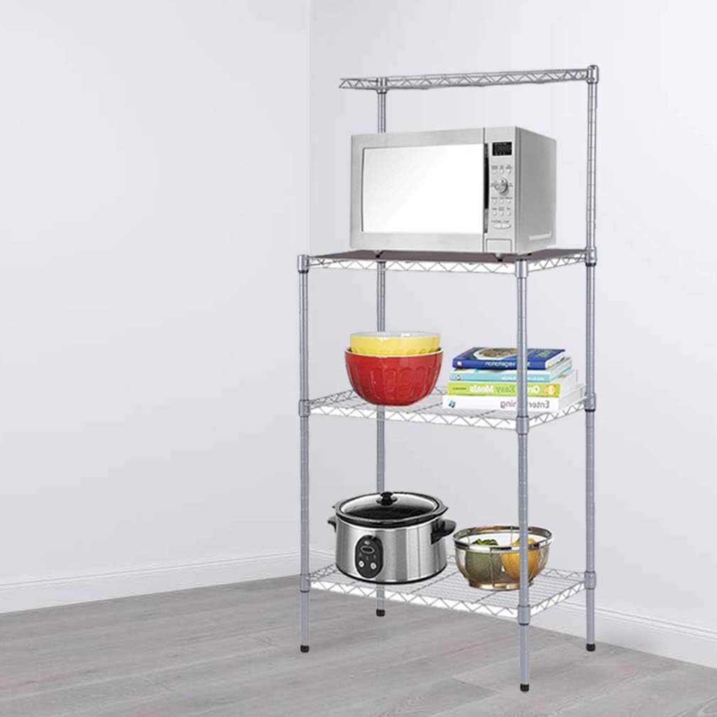 Features: Tidy up your messy kitchen, let each object has its own position. Provides extra space for kitchen accessories. Perfect to store your microwave oven, toaster, and other baking accessories. It can be extended to the length you need to take full advantage of the corner in your house, meet your placement requirements. An all-around kitchen wonder that will save time, energy, and most of all stress levels. Descriptions: Easy to arrange any microwave oven can be placed on the board which is very safe. Space saving, shelf stand storage unit. With 4 swivel wheels, easy to move where your want to place. Easy to remove and set up. Specifications: Color: silver Material: stainless steel Item size: approx.55*33*120CM/ 21.65*12.99*47.24Inch Package size: approx.56.5*34.5*14.5CM/ 22.24*13.58*5.70Inch Package Include: 1x Microwave Oven Stand With Wheels 1x Manual