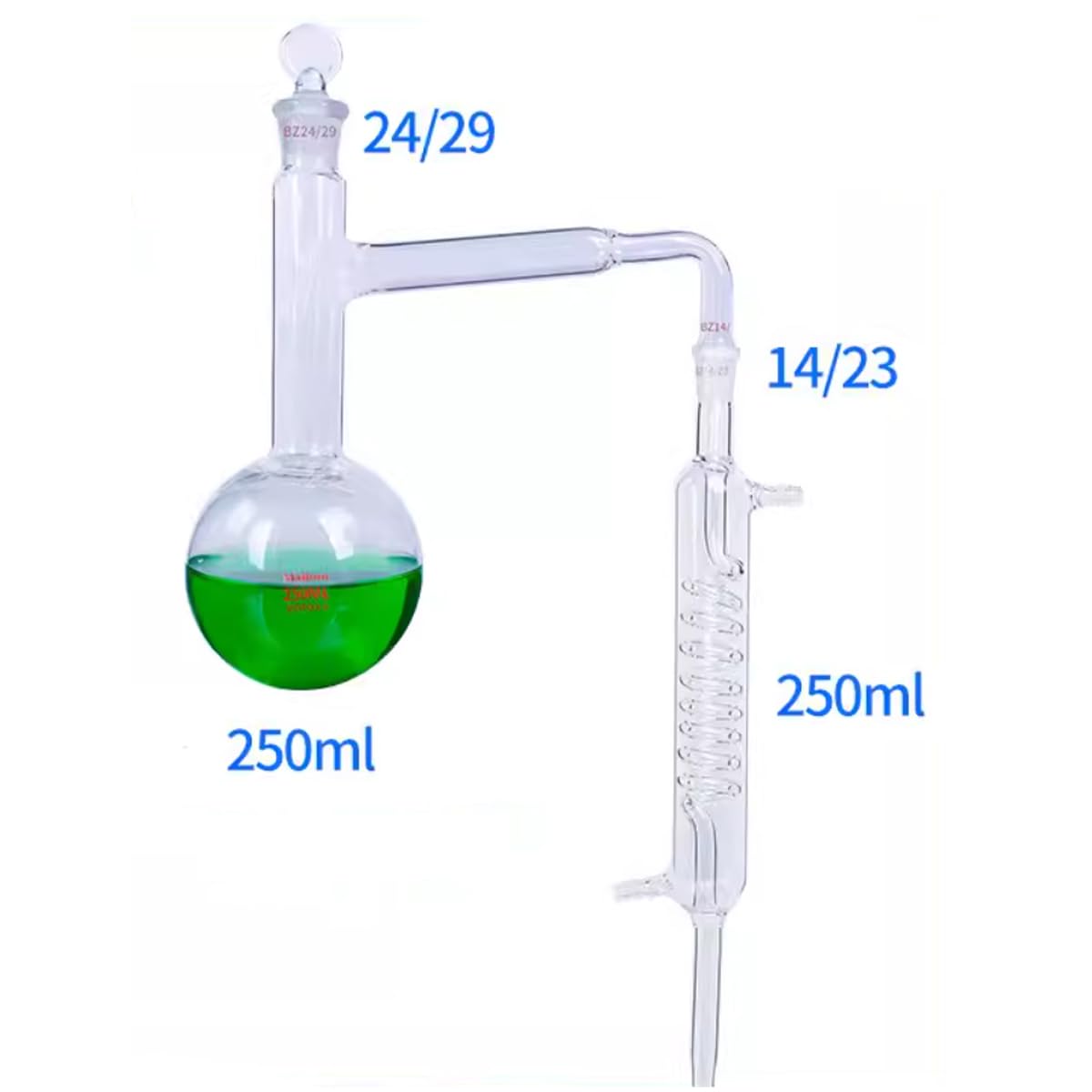 Kind reminder: You can choose the appropriate size according to your needs! If you have any problems with the product, please contact us as soon as possible and we will solve it for you! Designed for physics & chemistry experiments, Universally used in biological and chemical laboratories, schools, factories, etc. Package Contents: Distillation flask * 1 Serpentine Condenser * 1
