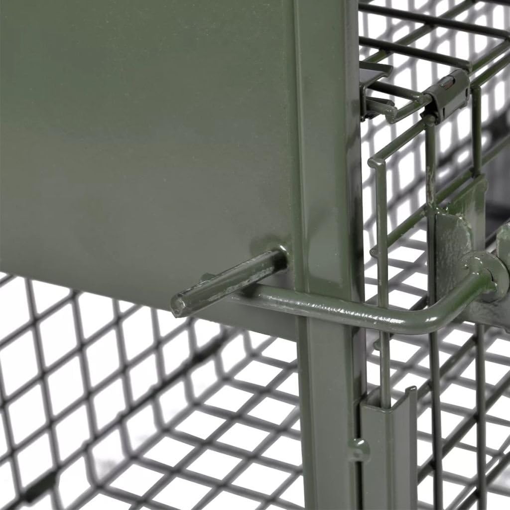 With handy dimensions, this live catch trap can be easily operated by one person. Small mesh holes (1" x 1") are designed to prevent escapes and stolen bait.This live trap is perfect for getting rid of any unwanted visitors. The live catch trap has no sharp edges that could cause injury to the caught animals.The live catch trap is made of sturdy wire mesh with additional reinforced frame. A foldable handle is equipped for convenient transport both with and without content.Size: 2' 7" x 9.8" x 9.8" (L x W x H)1pc doorIron wire: Dia. 0.09"Mesh hole size: 1" x 1"Materials: Steel
