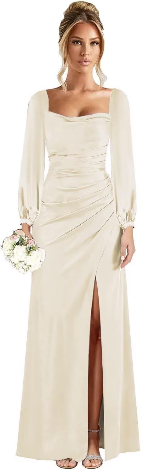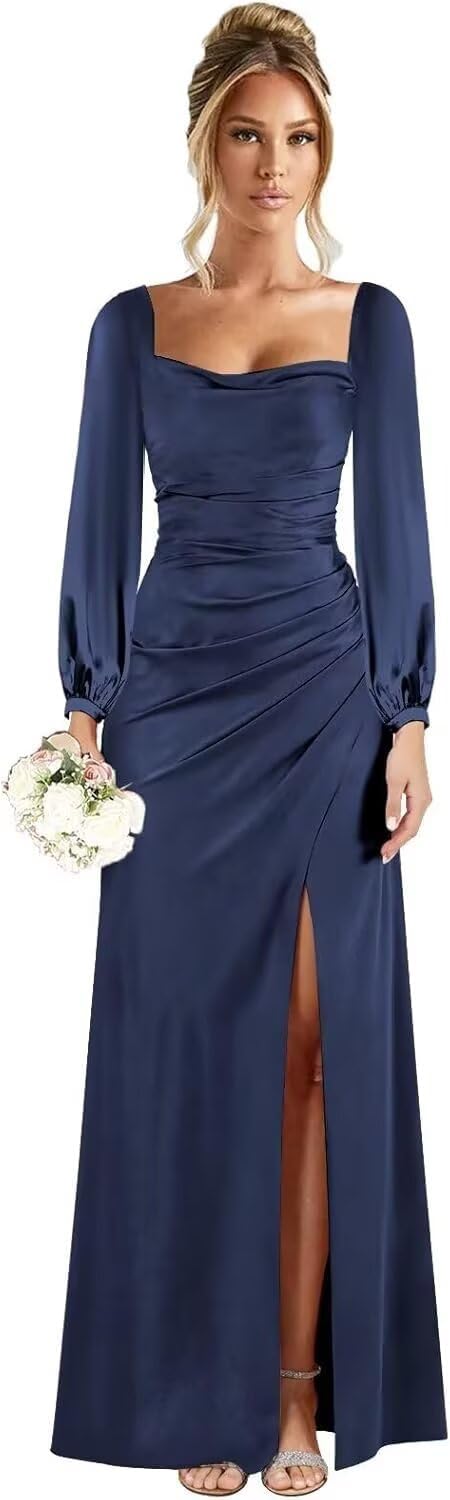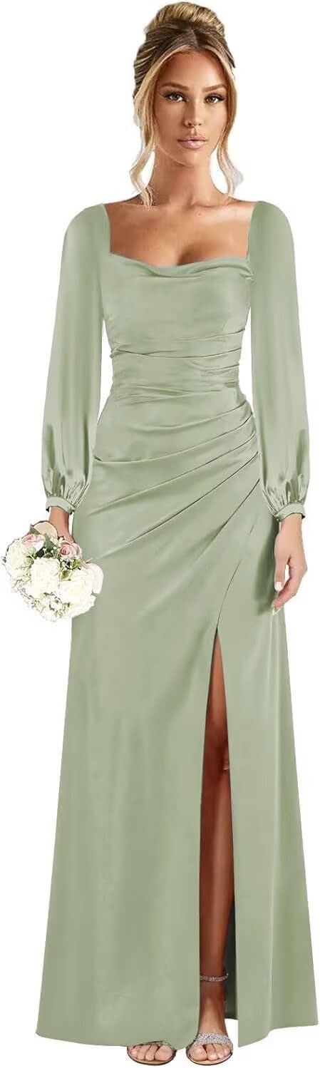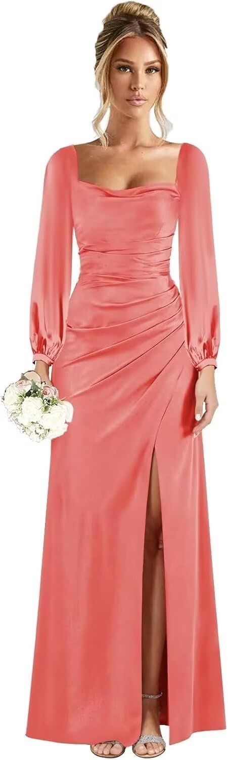 | Fabric Type | Long Sleeve Bridesmaid Dresses with Slit Satin Formal Prom Dress |