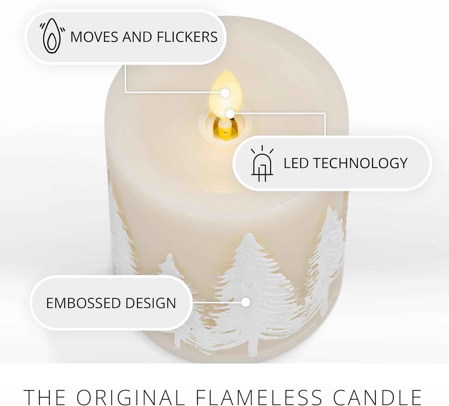Luminara White Swan Embossed Trees Flameless LED Candle, 3.2" x 4.5", Moving Flame, Safe Timer Feature, Real Wax, Battery Operated Home Décor