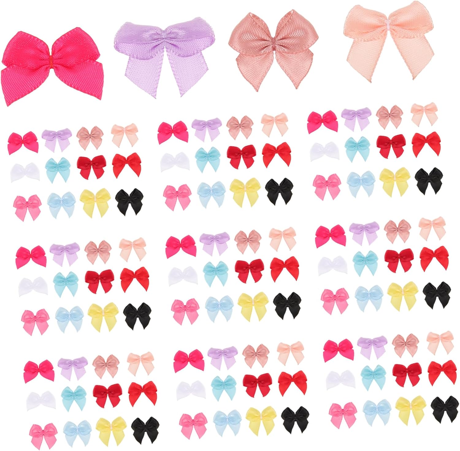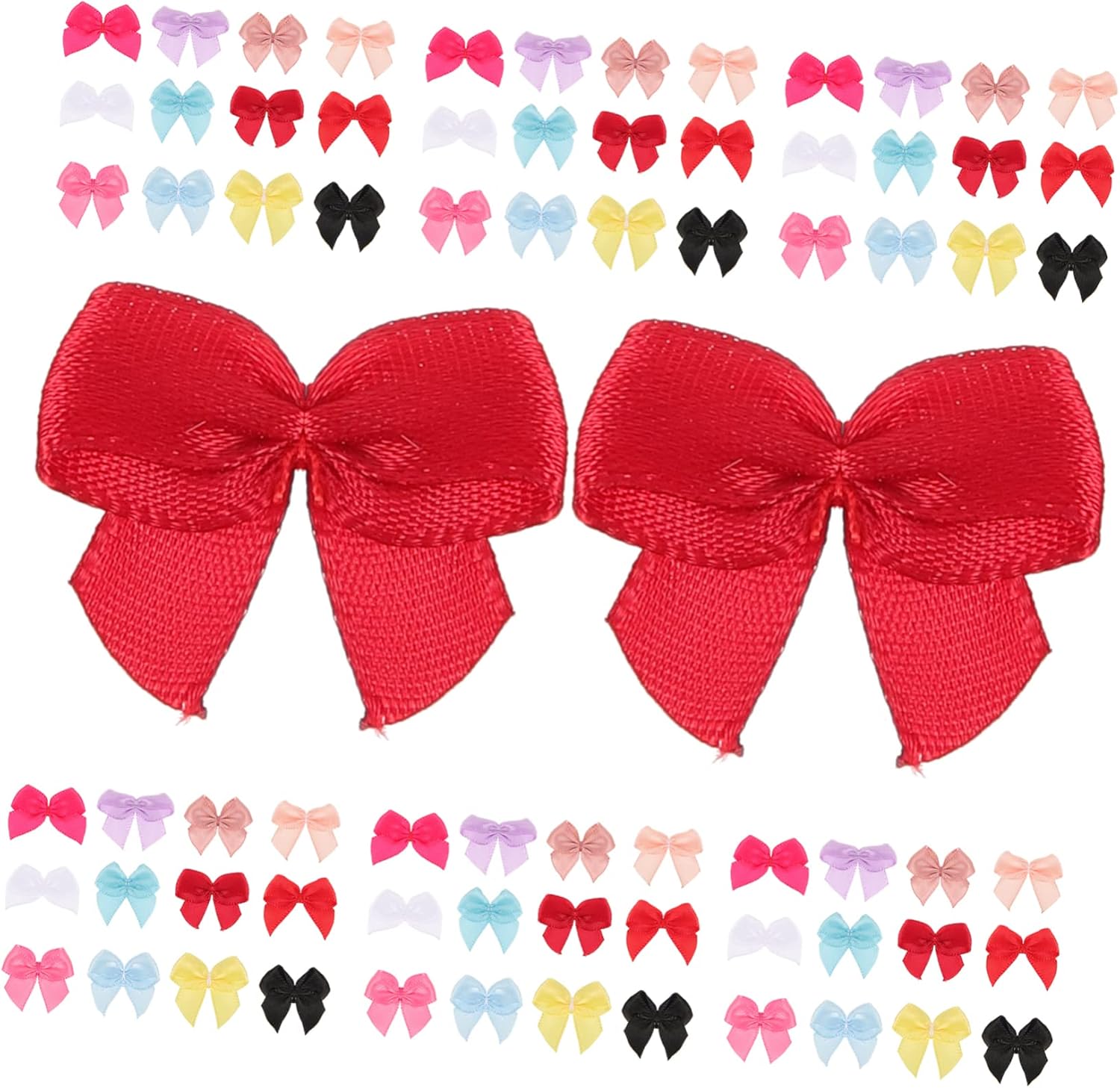 Package Include 1250 x mini bows decors Features -Size:3.00X2.50X0.52cm/1.18X0.98X0.20in Clothes Accessories -Material:Polyester mini satin bows -Color: Decorative Bows - You can use them to DIY some decorations for yourself and others. Meet your different using needs. party favor box mini bow - Can be used as a decor in packaging, can also be used to add different styles to clothing accessories boutique bows. - Mini Bow for sewing, scrapbooking, DIY crafts, and jars decoration. Bows for Decoration - These mini ribbon bows can be attached on bags, hair clips, bobby pin, headbands decorative bow. - Manufactured with Polyester material, and enough to use Creative Bow.Goods Informationmini Bowknot These mini bows are manufactured with polyester material, and enough to use.mini bow decor Featuring multipurpose, they are for DIY dress, clothes, hair clips and other items.DIY craft mini Bowknot With the pretty patterns, these bows are unique and creative