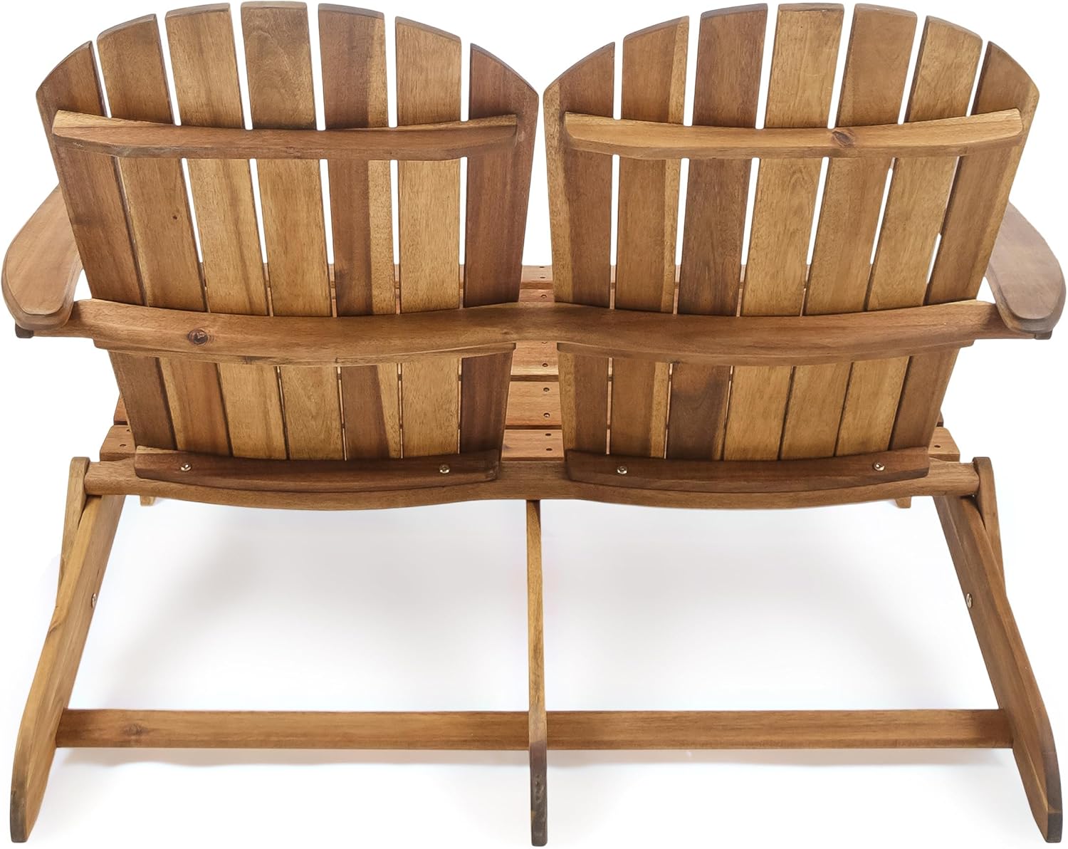 Feature:1. This slat-backed outdoor Adirondack loveseat combines ultimate comfort with timeless style. Made from the highest quality acacia wood, it is designed to hold up to the elements and look great. A perfect addition to your patio, backyard, or garden. Made from the highest quality acacia wood, it is designed to hold up to the elements and look great. A perfect addition to your patio, backyard, or garden. Material: Acacia Wood, Overall: 34.2? H X 51.7? W X 35.7? D
