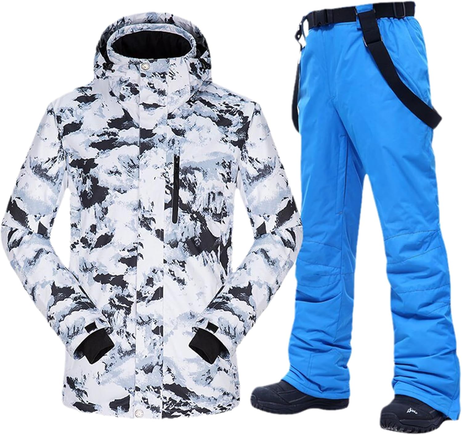 Exceptional Warmth and Comfort Filling: 100% Silk Cotton Lining: 100% Polyester Fabric: 100% Polyester Our ski suit is packed with 100% silk cotton filler, ensuring exceptional warmth even in temperatures as low as -30℃. The inner lining is made of 100% polyester, providing both comfort and insulation. The outer fabric, also 100% polyester, offers waterproof protection, making it suitable for various winter activities. Removable Hat: Customize your look and adapt to changing weather conditions with the removable hat. Waterproof Zipper: No need to worry about moisture seeping in, thanks to the waterproof zippers. Double Cuff and Elastic Band: These features provide an extra layer of protection against wind and snow, ensuring you stay warm and dry. Hat Elastic Band: Ensures a snug and comfortable fit for your headgear. Phone Pocket: Keep your essentials within reach with a dedicated phone pocket. Additional Features: Threshold zipper, strap buckle, detachable straps, side pockets, breathable zippers, windproof snow skirt, and pants zipper for added convenience and versatility. Double Cuffs and Inside Pocket: Ensures that snow and cold air stay out, while you stay warm and cozy. Breathable Net: Maintains ventilation, preventing overheating and discomfort during intense activities. Elastic Cuff Design: Provides added wind resistance and warmth. Conquer the slopes with confidence, knowing you have the best gear at your disposal. Our Ski Suit Men Winter -30℃ offers unbeatable warmth, waterproofing, and style, making it the perfect choice for your skiing and snowboarding adventures. Don't forget to leave a message after placing your order if you need different sizes for jackets and pants. We're here to ensure you get the perfect fit for your winter escapades. Upgrade your winter wardrobe today!