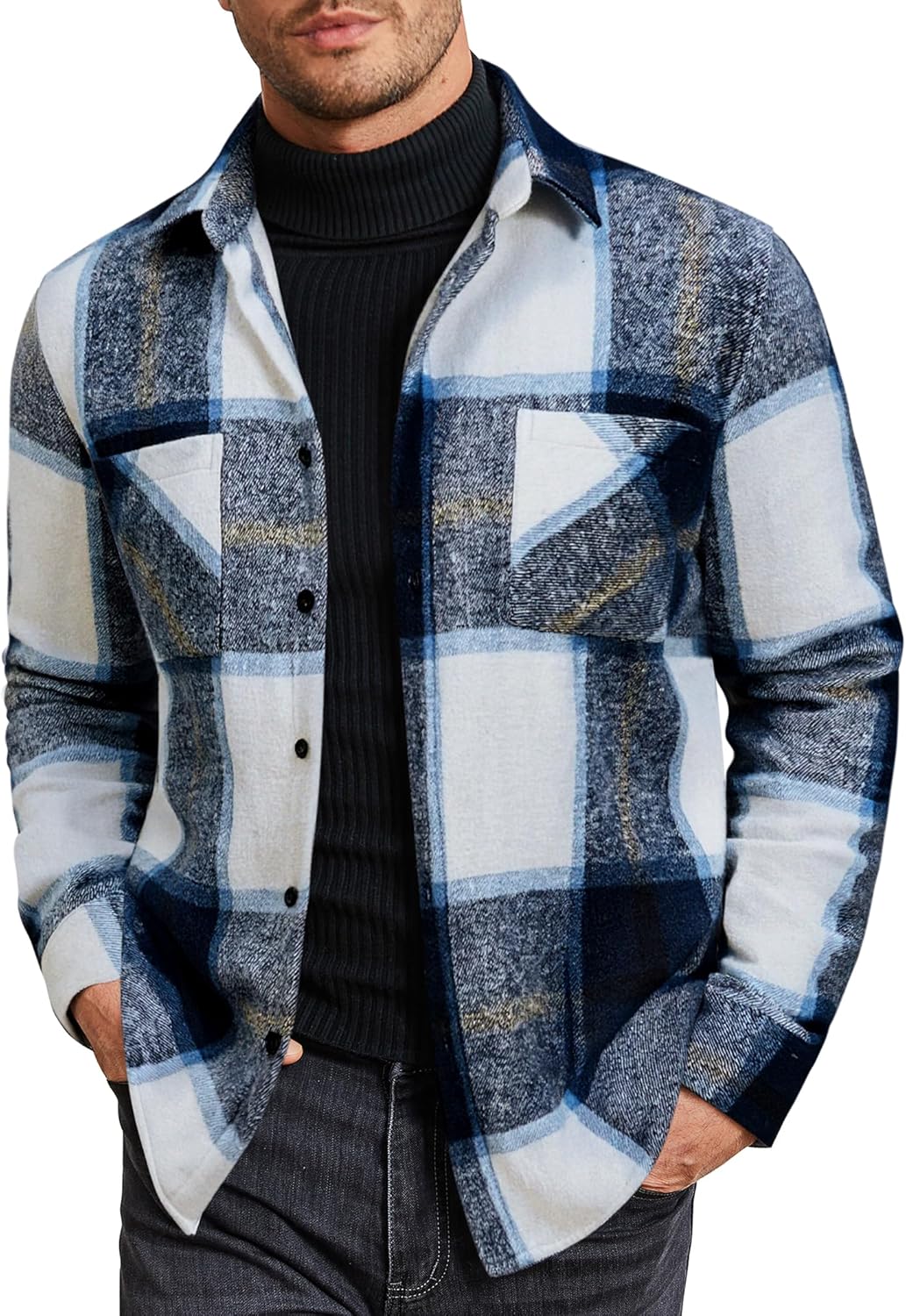 | Item Length Description | VOZZBY Men's Flannel Shirts Long Sleeve Casual Button Down Plaid Shirt Jacket For Men Shacket with Pockets |