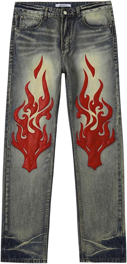 Make a bold fashion statement with these distinctive SHION7 men's jeans featuring unique distressed detailing and artistic patterns. These slim-fit denim pants combine style with comfort through their stretchable fabric construction. The mid-rise design and straight leg silhouette create a modern, flattering profile while maintaining a relaxed feel. Crafted from quality denim material, these jeans come equipped with practical 5-pocket styling and a secure front zipper closure. The 32-inch inseam and 32-inch waist provide a tailored fit for most body types. The standout feature is the eye-catching distressed pattern work that adds character and urban edge to these casual pants. Perfect for everyday wear, these jeans can be easily paired with various tops for both casual and semi-casual occasions. The machine-washable design ensures convenient care and maintenance. These versatile denim pants strike an ideal balance between contemporary style and practical comfort, making them a worthy addition to any modern wardrobe.