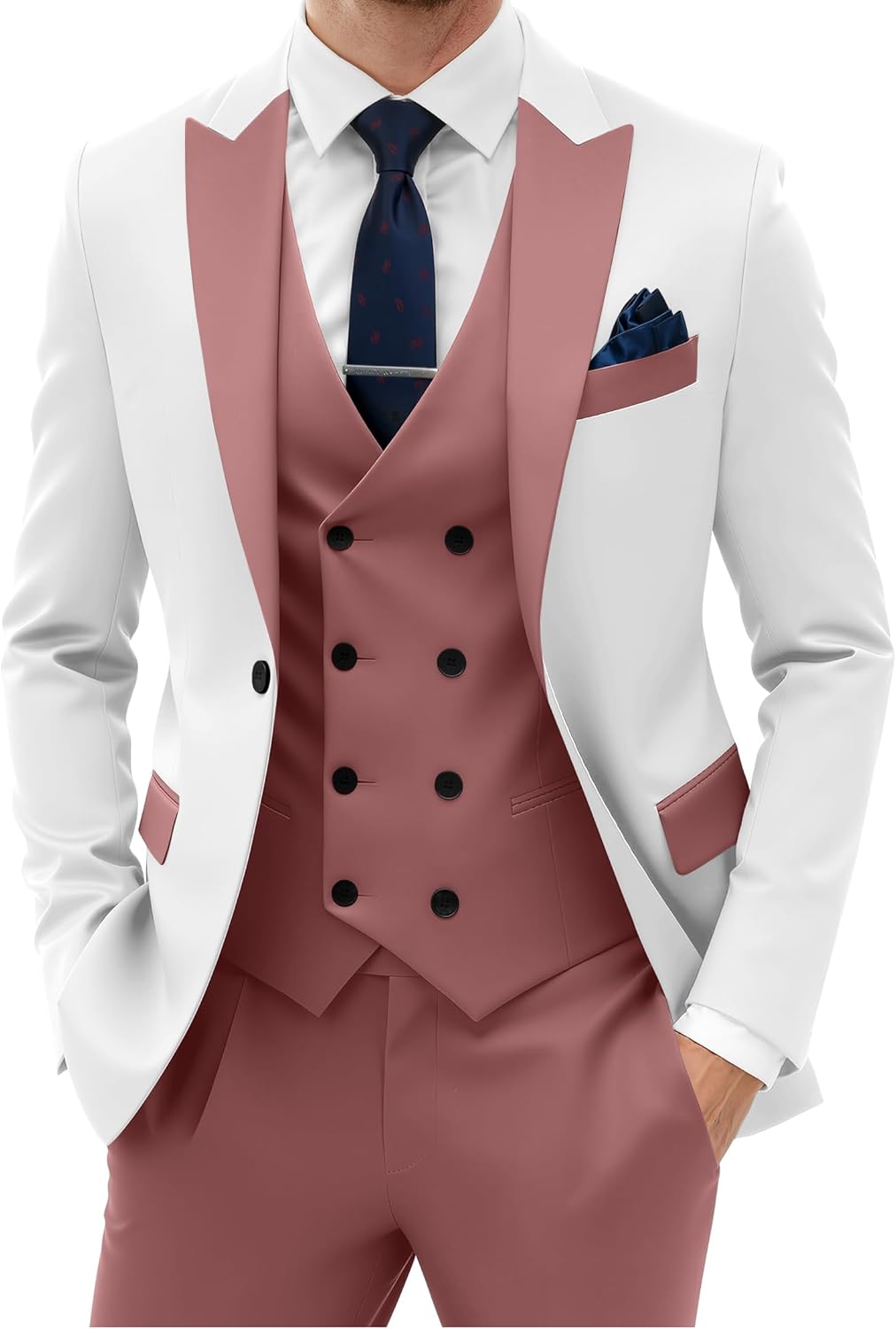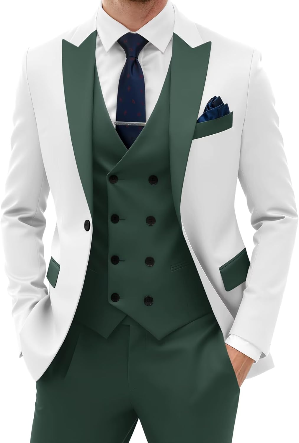 | Fabric Type | White and Black Men 3 Piece Suits Slim Fit Double Breasted Suit for Men Made for 80% Polyester and 20% Viscose. |