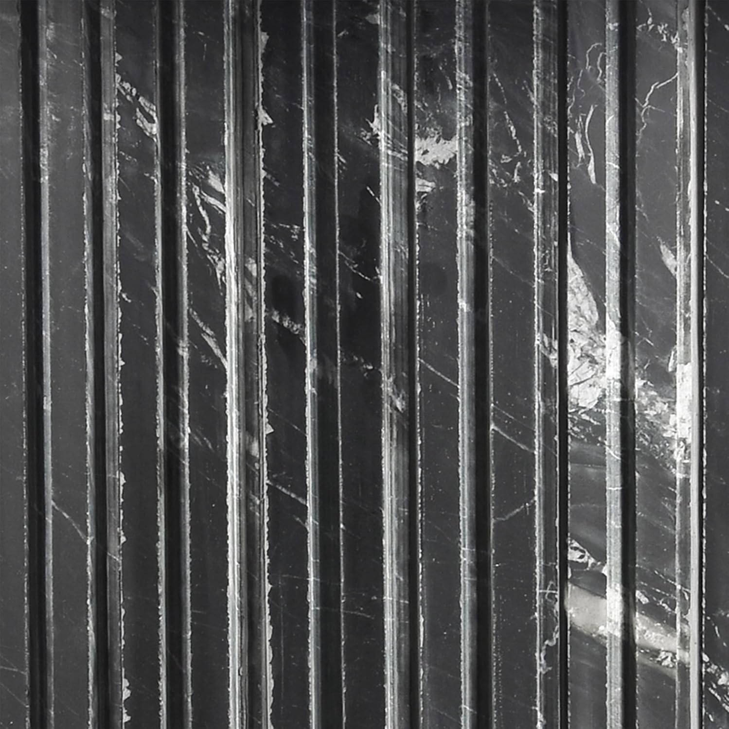Add a refined look to your room with this handcrafted black Genoa coffee table, a stunning masterpiece that marries elegance and practicality. Crafted from genuine marble, each table is a unique work of art, featuring a black marble top with intricate white veining. The fluted marble base adds a touch of art deco design, making it a statement piece in any room and adding to its heirloom-quality design.