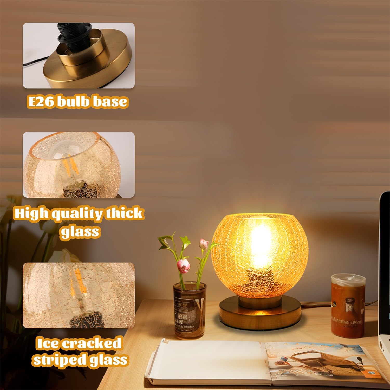modern table lamps,classic design allows use in a wide variety of space. These table lamps are perfect for bedrooms, living room, nightstand , bedside , etc. Name: Mid Century Modern table lamp Material: glass Style: Modern Color: Amber shade diameter: D7.08" x H8.27"/ D18* H21cm Light source: E26 (Bulbs Not Included) Voltage: 110- 240V Maximum power: 60W Irradiation area: 10-15㎡ Package Included: 1 X Glass table lamp 1 X User Manual 1 X Accessories Package We are always available to provide a professional service before and after your purchase.If you have any questions please feel free to contact us