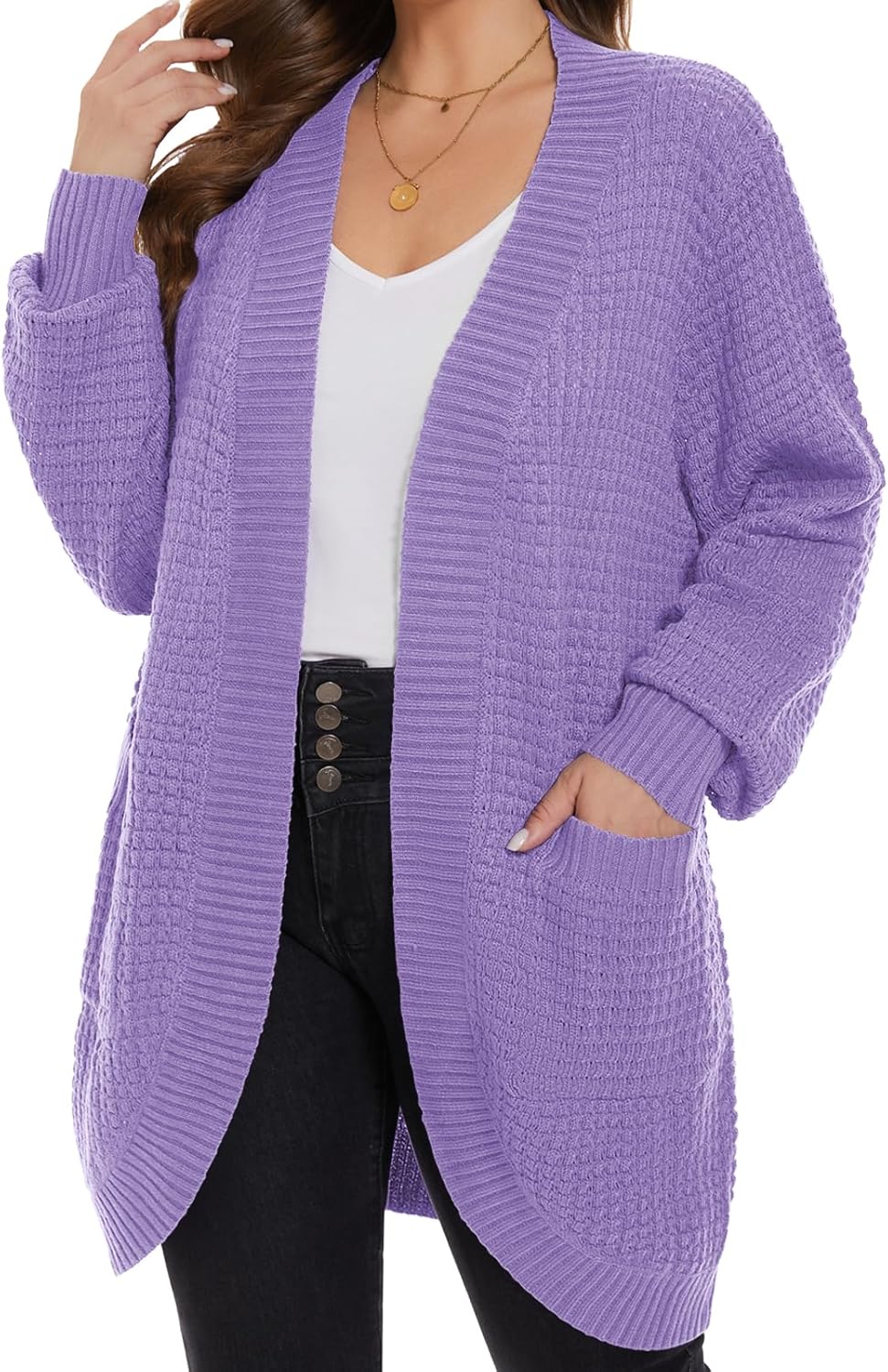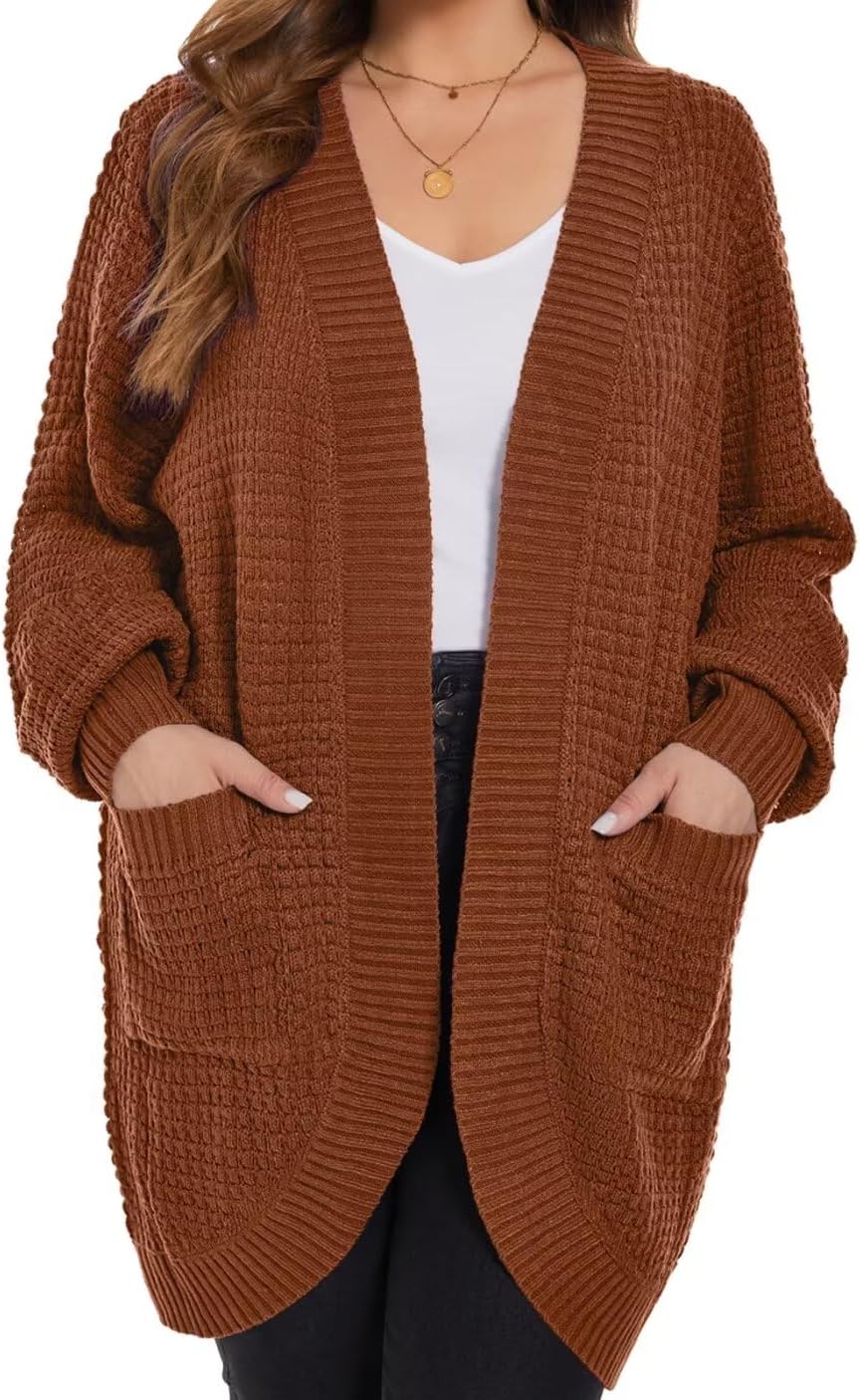 Womens Plus Size Open Front Cardigan Waffle Knit Long Sleeve Sweaters Tops 2025 Fall Coat Outerwear with Pockets