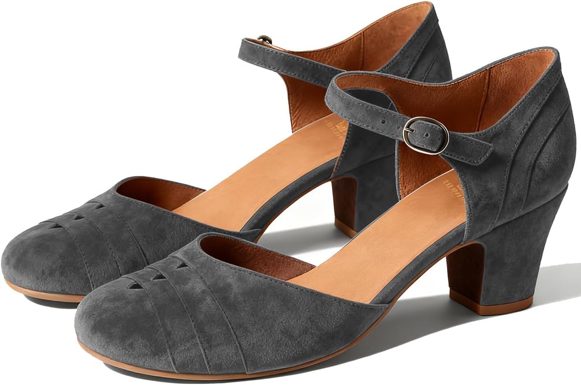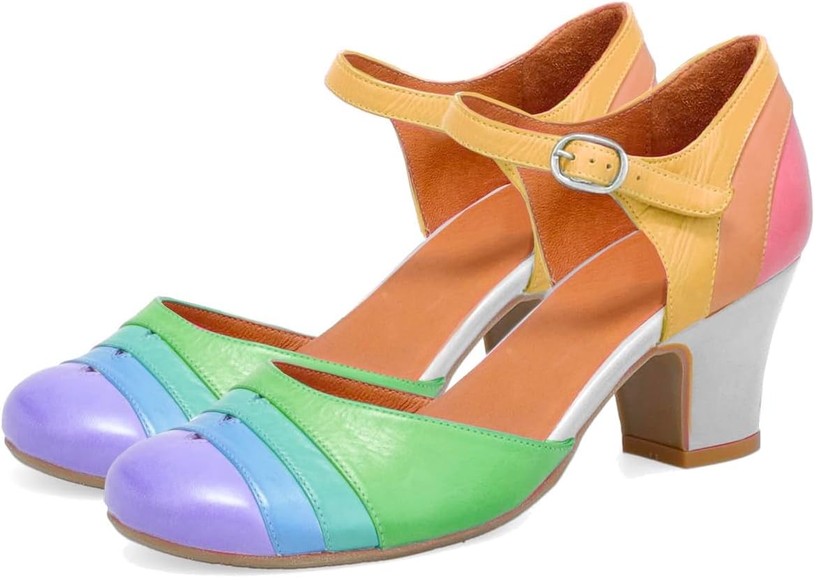 ✨Welcome To Moommo Studio!✨ 💕Shoes Features: 【Heel】Approx 2Inch; Approx 5cm. 【Material】Matte Leather Mary Jane Heels Pumps. 【Toe】Round Closed Toe Cut-out Mary Jane Shoes. 【Wear method】Buckled Ankle Strap Mary Jane Heels Patchwork. 【Occasion】Vintage Style for Office, Work, Party, Ball, Wedding, Prom, Daily. 【Size】True to size. Choose your usual size. 💕Moommo Advantages 【One】Every 1 pair of shoes is handmade. 【Ten】At least 10 test models for selecting the most comfortable type. 【Fifteen】The development of each shoe last are more than 15 days. 【Twenty】Over 20 years of shoe-making experience in our own factory. 【Three hundred and sixty-five】Our shoes will give you 365 days of peace of mind.