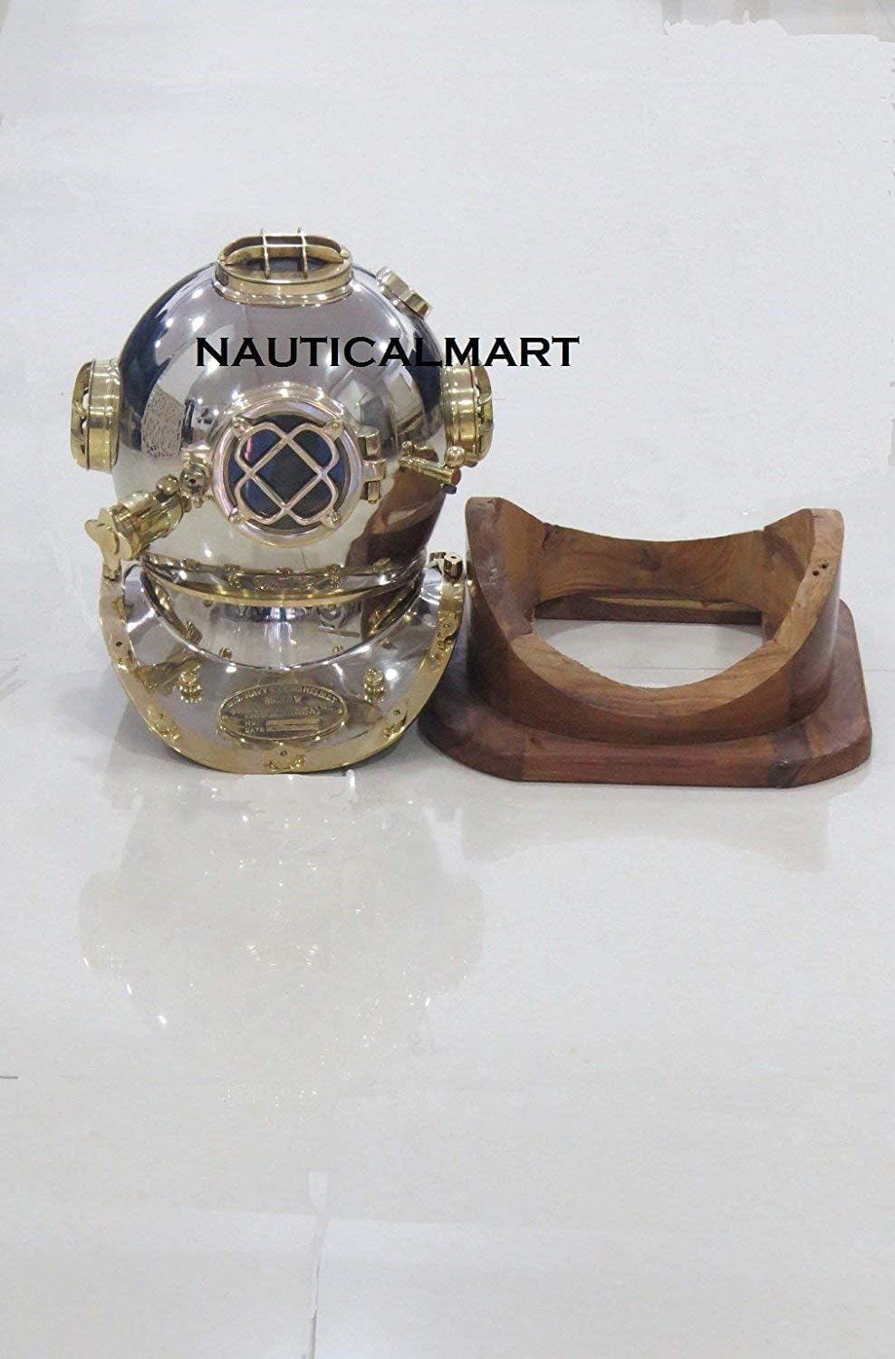 18" Scuba Diving Divers Helmet W/Wooden Base U.S Navy Mark V. The diver's diving helmet is worth purchasing from nauticalmart. The offered helmets are one of the masterpieces from ancient days that are still highly in demand across the globe, The metal used in manufacturing process makes the helmets more attractive and durable. These come under our latest collection that can be purchased at competitive prices.
