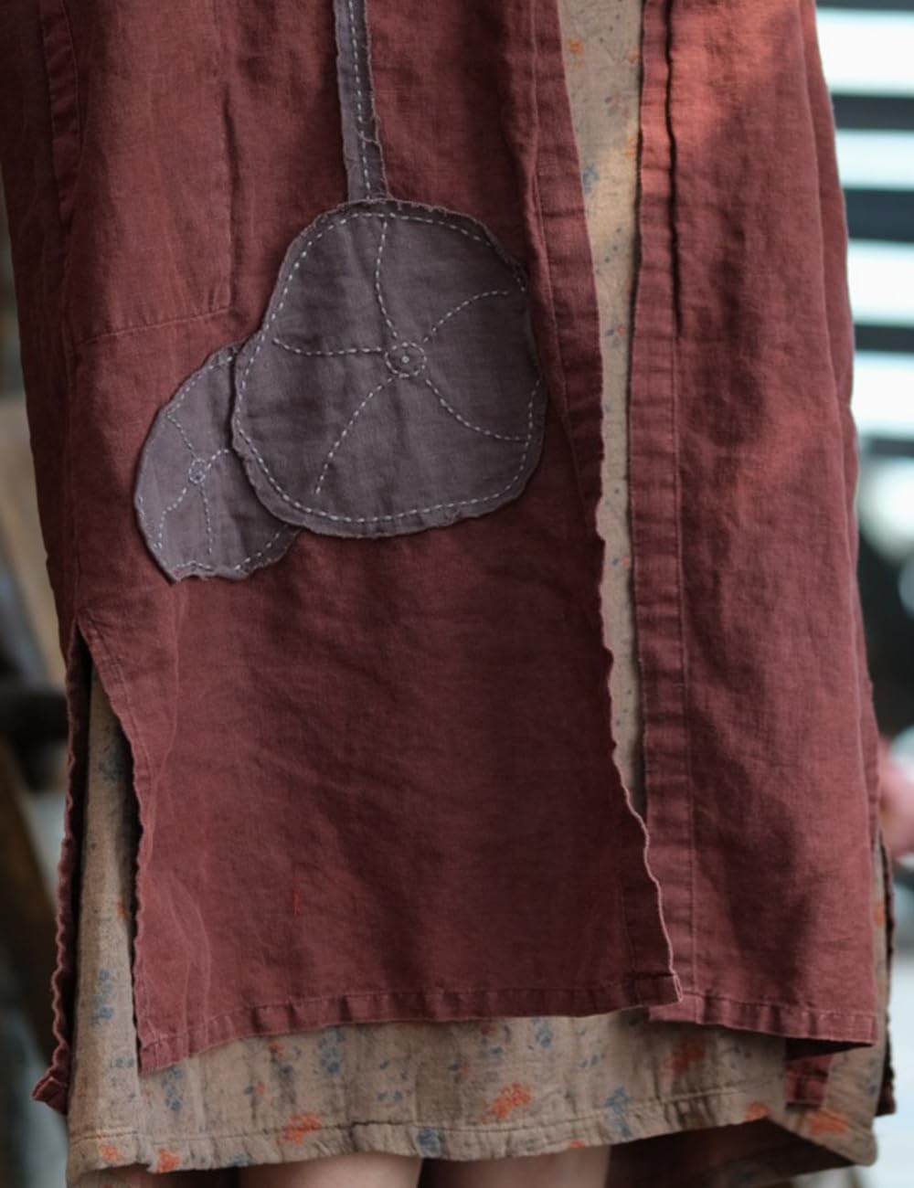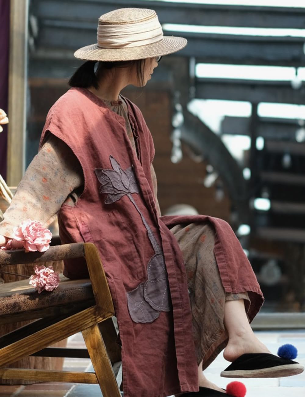 Women Linen Sleeveless Open Front Tunic Long Vest Unique Lotus Flower Patch Long Kimono Cardigan Outerwear with PocketsColor difference:We strive to make our colors as accurate as possible; however, due to individual monitor settings, we cannot guarantee that the color you see on your screen is the exact color of the product. Size difference: This size information is just for reference only, and allow 1-2cm (0.4-0.8")