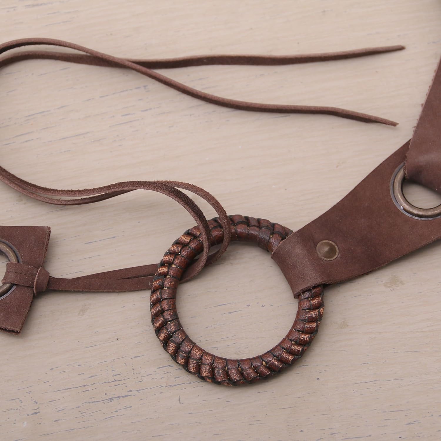 Novica works together with talented artists, artisans, and designers around the world to produce stunning, keepsake handmade treasures.About this item: Tomomi creates a stunning contemporary belt for the edgier fashionista. Trapezium shapes of brown leather are connected through stainless steel rings, while a woven leather ring serves as a belt buckle. 33.5" L x 2.0" WAdjustableHand-crafted item -- color, size and/or motif may vary slightlyAbout our Artist: Bali has become Tomomi's favorite place. After visiting Bali several times on vacation, she decided to move there in 2004. Born in Tokyo, she lived in Vietnam where she worked in an interior dcor shop. There she was introduced to furniture and handicrafts from different places such as Africa, Indonesia and Thailand. Tomomi majored in art and design. Now, together with a friend, she designs and creates leather and cow bone accessories, as well as cotton apparel.