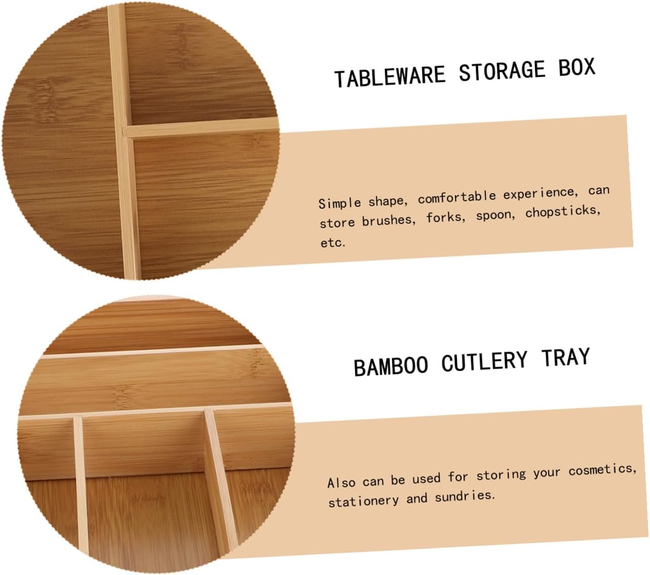 Package List 1 x storage container Characteristics -Material: -Size: 43.00X31.00X5.20cm/16.90X12.18X2.04in -Product Info:Drawer organizer box -Color:Light Brown - Simple shape, comfortable experience, can store , forks, spoon, chopsticks, etc silverware trays for drawers. - Also can be used for storing your cosmetics, stationery and sundries kitchen utensil storage organizer. - Environmental friendly and safe material for and healthy use. - It can help you keep the small items of your kitchen in order and easy to Storage Cutlery Tray - Small size and light weight, will not take up of your space.Goods Informationkitchenware storage 6 grid design is creative and fashion for both tableware holding and some sundries' storage. drawer organizer boxes It is made of which is sturdy and , which can help keep the kitchen neat and clean. Tableware Divider A nice and multi-purpose storage tray for provide relaxing life for yourself as well as your family