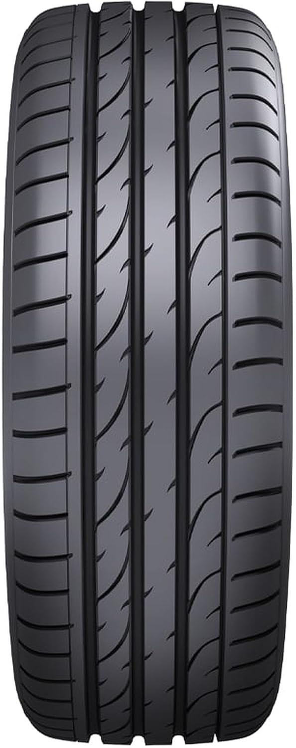 The high-performance Otani KC200 tire is designed for passenger cars. It features an asymmetric tread design that delivers smooth and quiet rides. On wet surfaces, its wide grooves evacuate water from the contact patch while siping increases grip. The continuous center rib yields superb handling and enables shorter braking distances. The robust carcass enhances high-speed ability while the optimized footprint evenly distributes stresses to ensure even wear and improve ride stability.