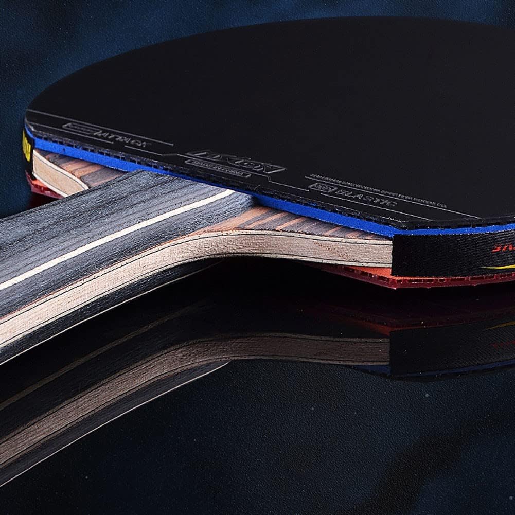 The thick blade offers the paddle enough solidness and nice bounce so that ensuring the powerful attacking and defending.The table tennis racket with premium carry case could be an ideal gift for birthday or Christmas.Our newest version of the all-time favorite table tennis racket now comes in elegant, gift-worthy packaging to match the high class look of the paddle itself. Completed with a burnt wood handle and wooden side tape,It is not just about looks, all the features have a purpose. The wooden side tape serves to protect your paddle from damage and also preserves the energy you generate to produce more powerful shots.We are committed to creating quality products for all players, at any level, with the hope that they develop the same passion for table tennis.