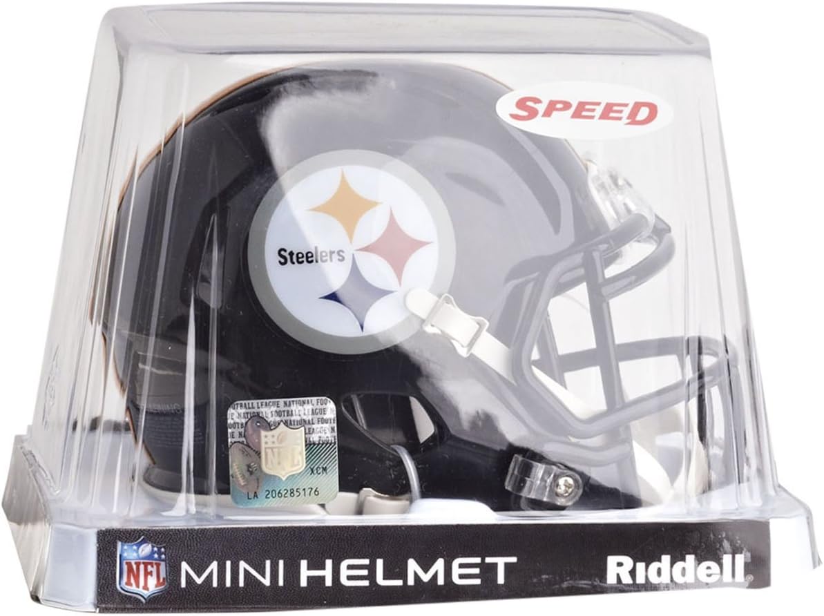 This Pittsburgh Steelers Speed Mini Helmet is a half-scale replica of one of the most popular new helmet introductions in Riddell's history. It's a must-have for the serious collector. Includes interior padding, 4 point chinstrap and is decked out in official team colors. Speed Mini Helmet Interior padding Half-scale replica 4 point chinstrap Team colors and decals Approx. 5" tall Officially licensed This Product Makes a Great Holiday Gift!