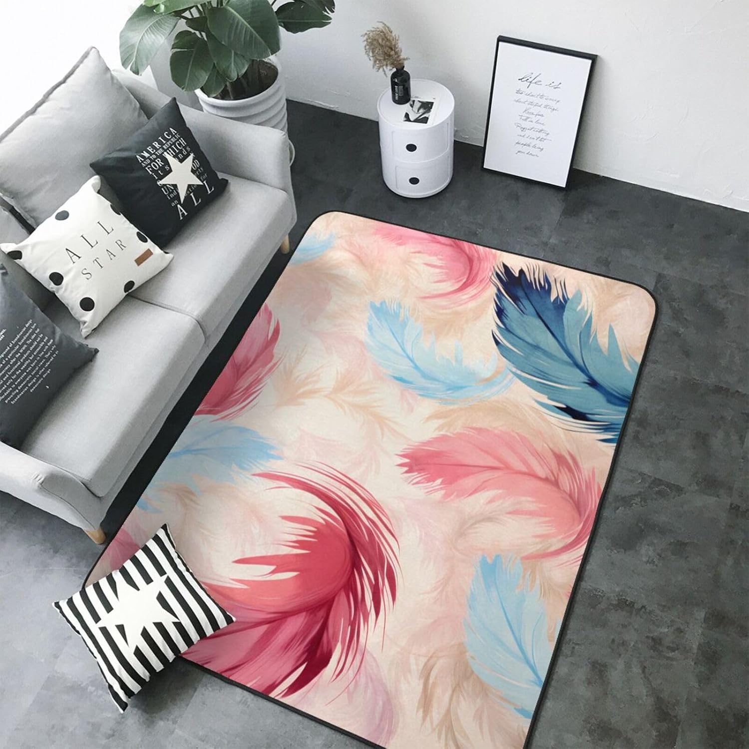 Choose our plumage printed decorative carpet to bring meticulous care to your family. Made of high-specification polyester flannel, the pile is fine and dense, not easy to pilling and fading, and it will accompany you longer. The memory foam middle layer is like a caring friend, dynamically adjusting the foot pressure, relieving fatigue, and making your every step full of comfort. The non-slip bottom design is like a loyal guardian, silently protecting the safety of you and your family, especially suitable for families with elderly and children. Easy to clean, can be washed by water or machine, saving time and effort. Exquisite cutting and sewing technology ensures that the edge of the carpet is flat and burr-free, and the truth is in the details. Whether it is a bathroom, bedroom or office, it can add a touch of warmth and peace of mind to your life.