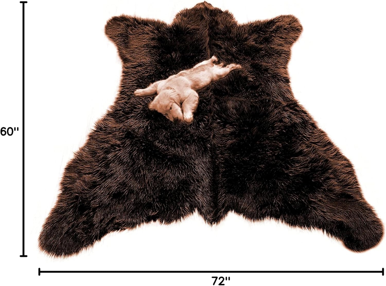 Plush Faux Fur bear Skin Area Rug, Accent Rug, Dark Grizzly Bear brown Color, Soft, Ultra Suede Lining, Easy Care, Cold Wash Gentle, Air Dry, No Heat. Hand Crafted in America