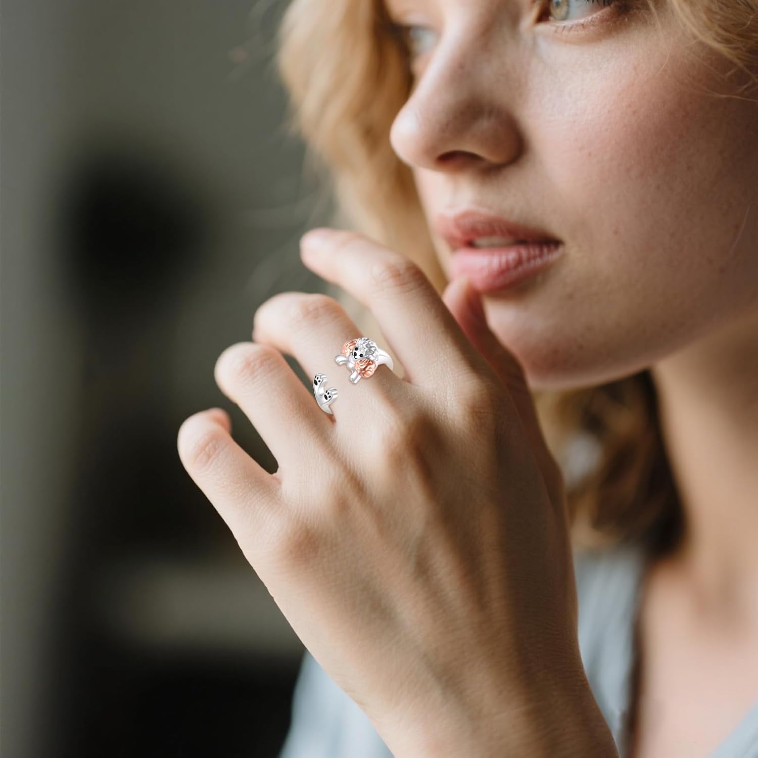 Adorable Design:The sterling silver poodle ring features an adorable open design with a charming poodle and rose gold-plated ears. This playful piece celebrates the joy of poodles, making it a delightful accessory for any dog lover.