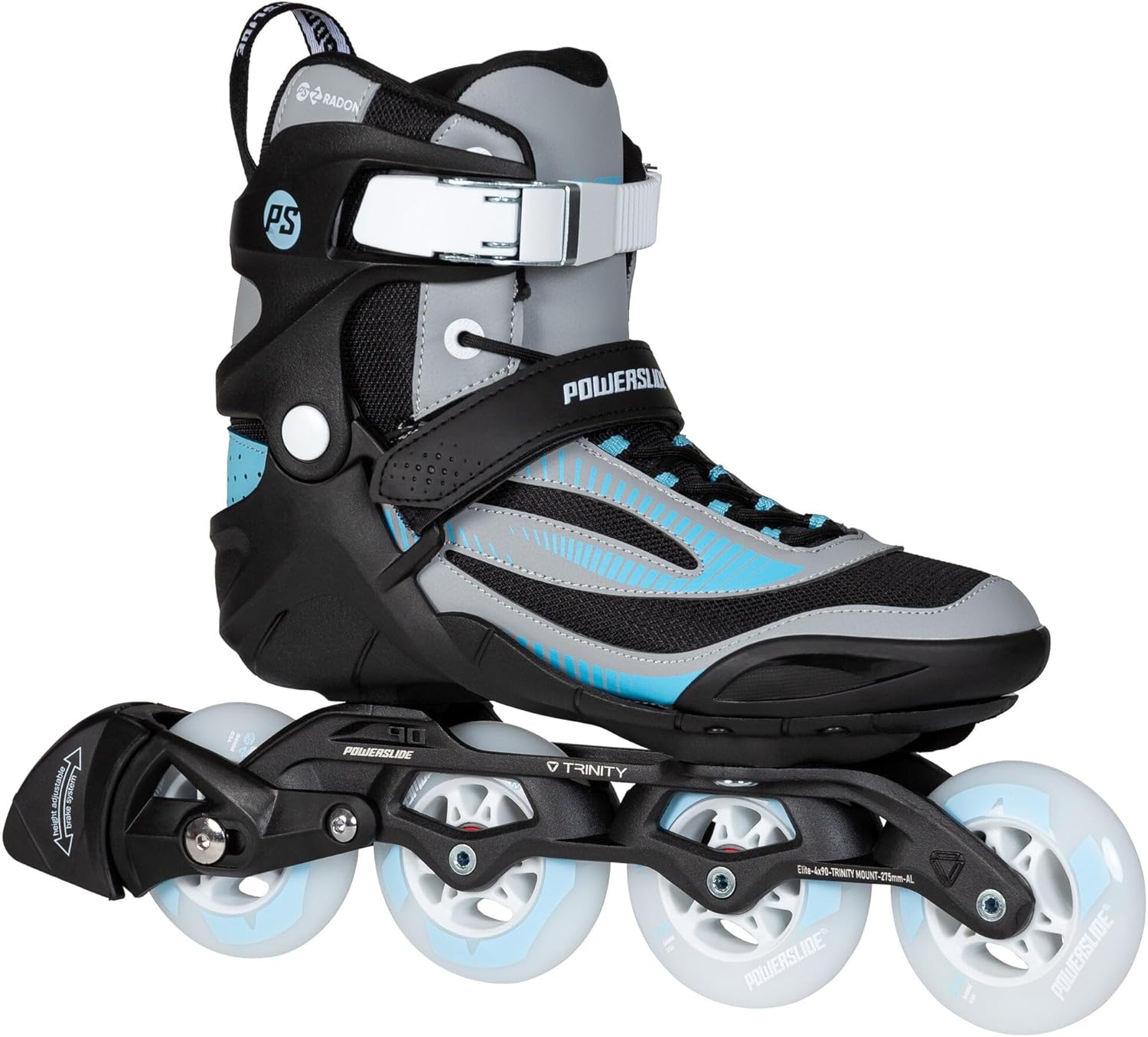 The Powerslide Phuzion Radon Slate Grey 84 inline skate is the pinnacle of comfortable performance. With a new, higher, more compatible fiberglass reinforced sleeve, radon is lightweight, supportive and sensitive. The upper of the boot is made of a nylon mesh material that hugs your foot while the extra stitched pieces provide extra stability. During long, intense workouts, you're going to love the comfort level of the PHUZION Radon Slate Grey 84. Incorporating the innovative TRINITY 3-point mounting system, this high-performance inline fitness skate gives you a low center of gravity that increases stability and control. The TRINITY system also allows you to adjust the position of the frame to enhance your personal skating style. The POWERSLIDE PHUZION radon comes with the Elite cast Riding on 4x84mm Infinity Wheels and WICKED ABEC 7 Bearings precision aluminum frame. This awesome fitness skate is the perfect balance of speed and control. The skate comes complete with a Powerslide Height Adjustable Brake System (HABS) that gives you wider control and maximum safety. Enjoy fun no matter if you cruise with the family or go for a faster training in the PHUZION Radon Slate Grey 84 inline fitness skate from POWERSLIDE.